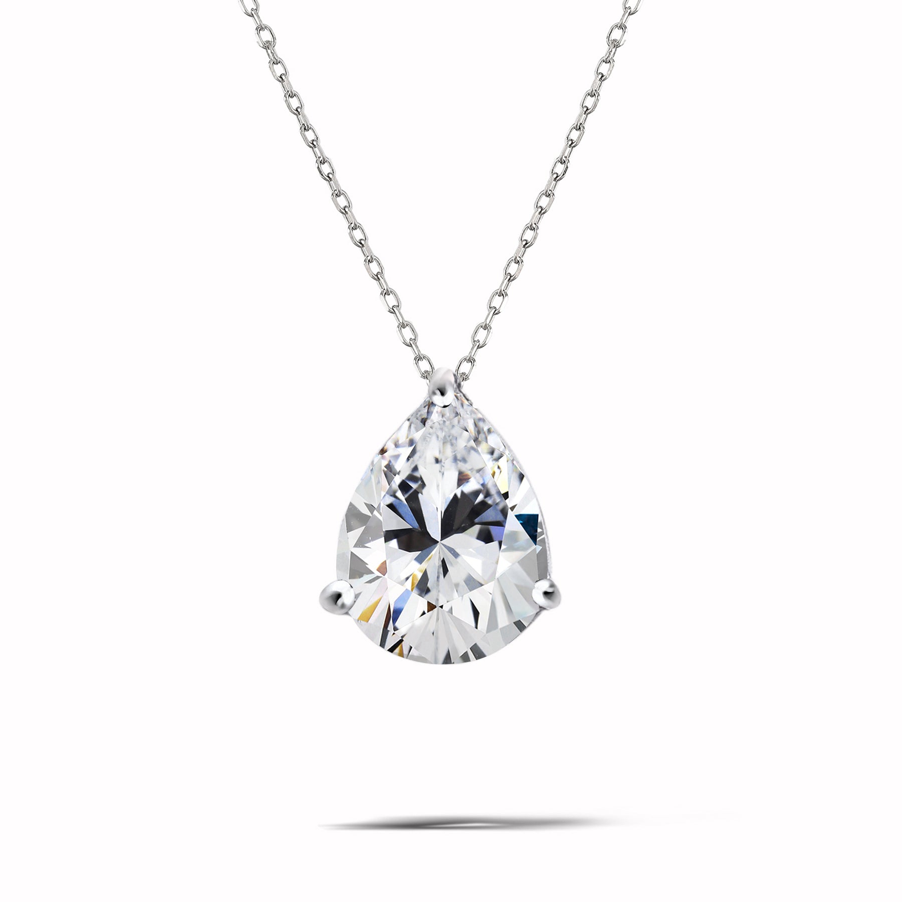 Attract every attention with this Elegant 1.5 TCW Pear Shaped - Cubic Zirconia - April Prongs Solitaire Slider Pendant Necklace in 18K White Gold over Silver, a true embodiment of sophistication at a budget price. This 925 pendant necklace showcases the timeless beauty of a pear-shaped cubic zirconia gemstone set in a prong setting, all elegantly presented in 18K White Gold over Silver. Our pear cut necklace showcases a stunning 1.5 TCW pear cut cubic zirconia gemstone that captures the eye with its radiant brilliance. The slide pendant design adds a touch of classic charm to your look, making this pear solitaire necklace perfect for both formal and casual occasions. This minimalist pendant necklace is the epitome of versatility and comfort, making the Silver slide necklace an ideal addition to your dainty jewelry collection.|Pendant Design: Prongs Set|Total Carat Weight (All Stones): 1.5 Carat|Main Gemstone Type: Cubic Zirconia|Main Gemstone Shape: Pear Cut|Metal Type: 18K White Gold Plating Over Silver|Birthstone Month: April|Condition: New