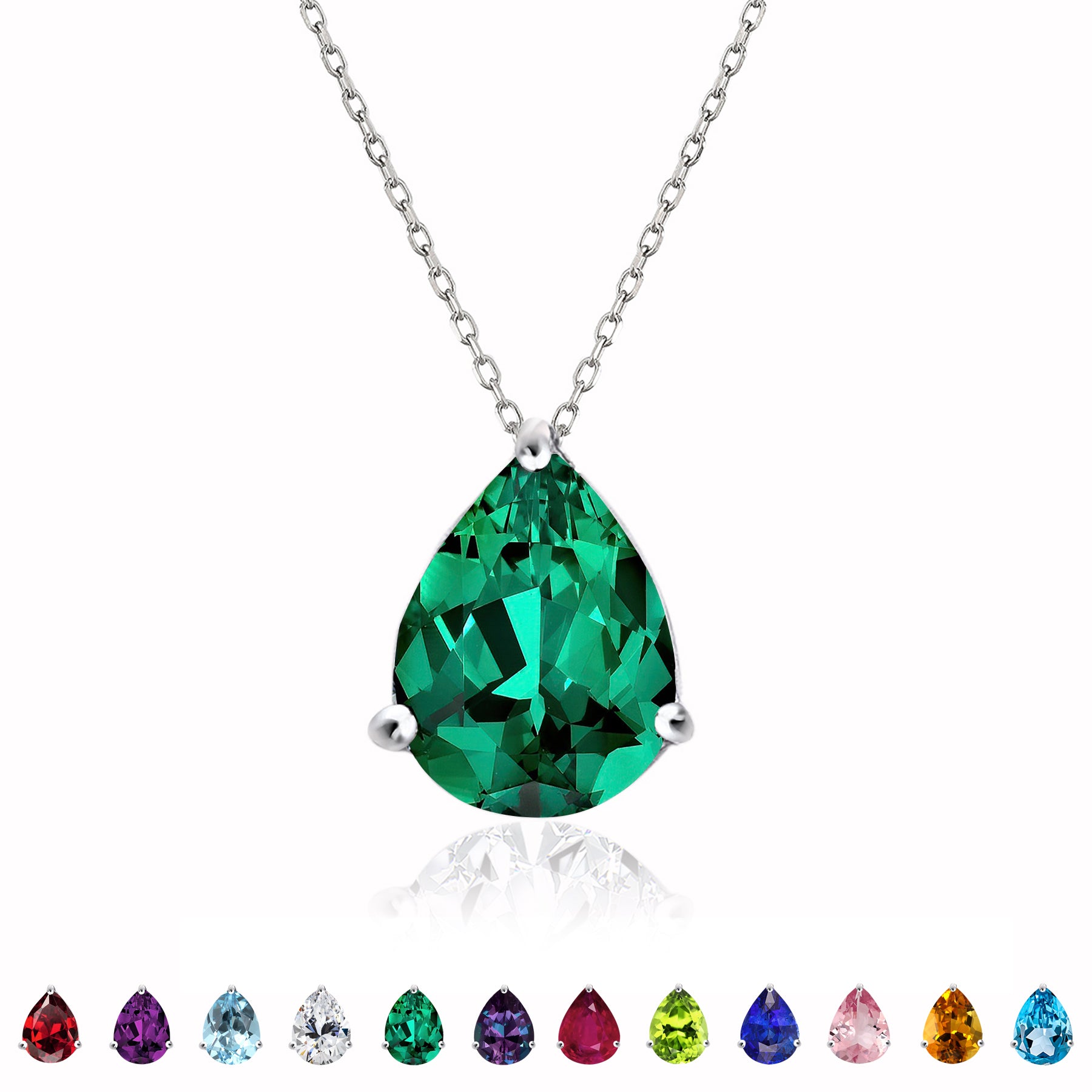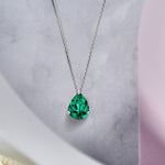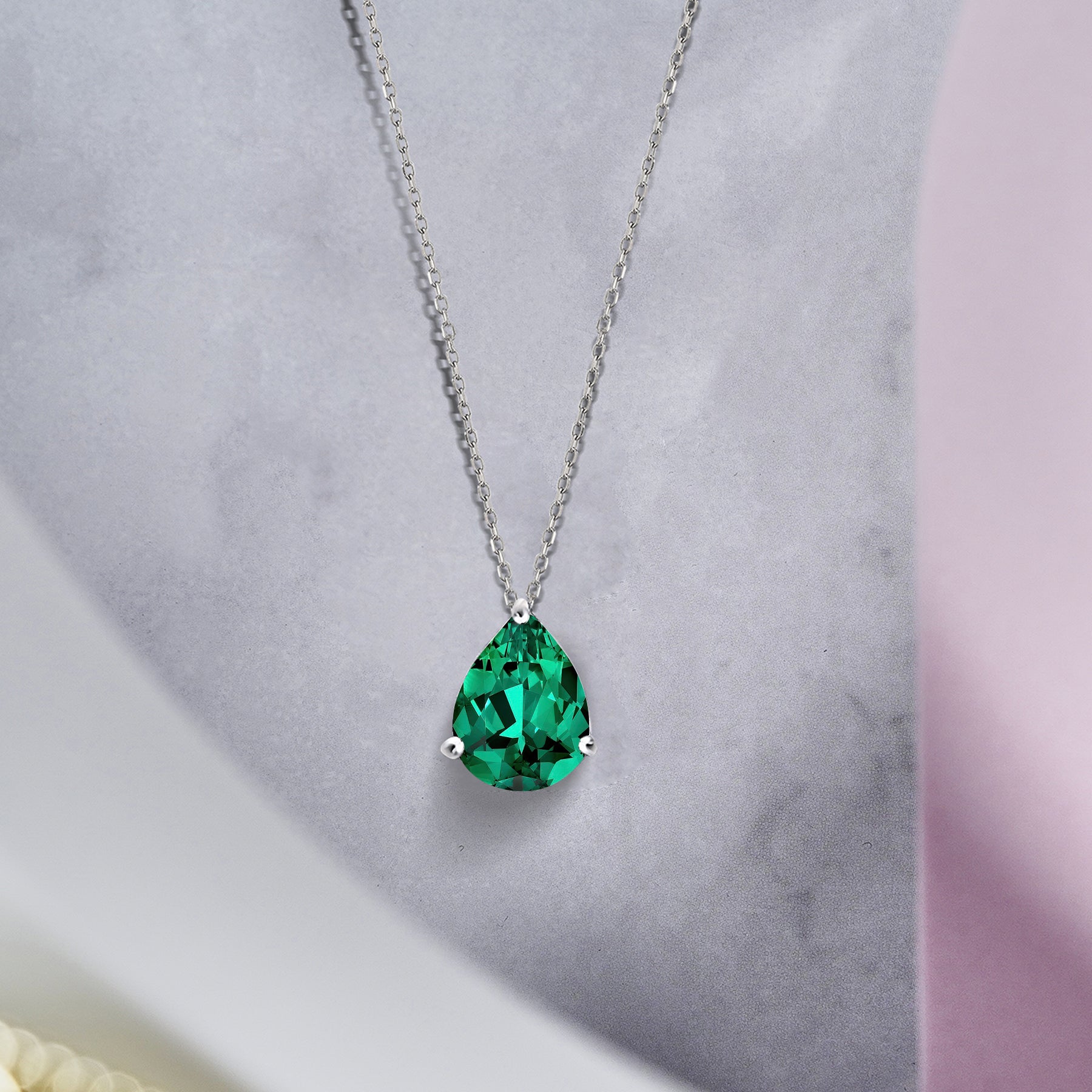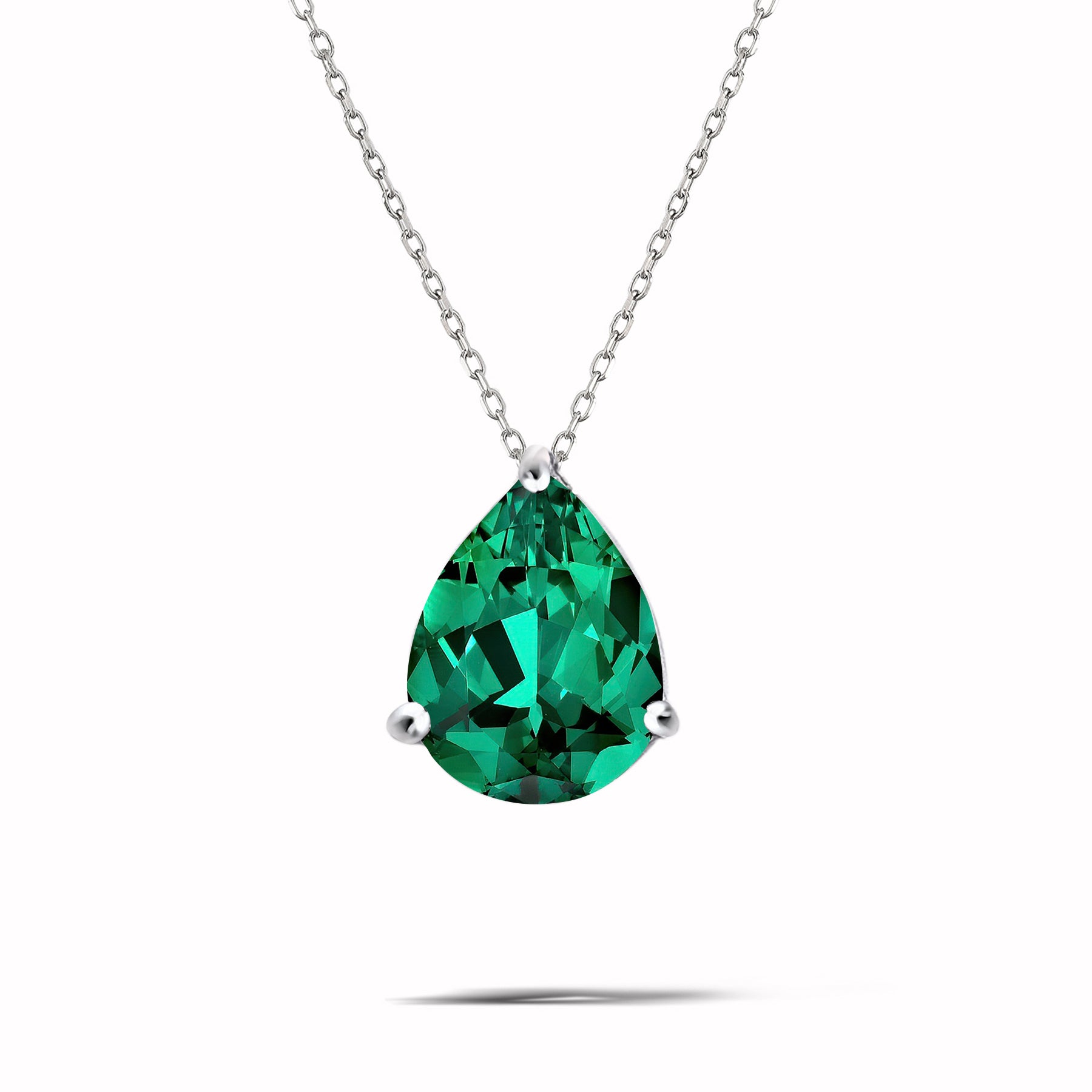 Attract every attention with this Elegant 1.5 TCW Pear Shaped - Emerald - May Birthstone Prongs Solitaire Slider Pendant Necklace in 18K White Gold over Silver, a true embodiment of sophistication at a budget price. This 925 pendant necklace showcases the timeless beauty of a pear-shaped cubic zirconia gemstone set in a prong setting, all elegantly presented in 18K White Gold over Silver. Our pear cut necklace showcases a stunning 1.5 TCW pear cut cubic zirconia gemstone that captures the eye with its radiant brilliance. The slide pendant design adds a touch of classic charm to your look, making this pear solitaire necklace perfect for both formal and casual occasions. This minimalist pendant necklace is the epitome of versatility and comfort, making the Silver slide necklace an ideal addition to your dainty jewelry collection.|Pendant Design: Prongs Set|Total Carat Weight (All Stones): 1.5 Carat|Main Gemstone Type: Cubic Zirconia|Main Gemstone Shape: Pear Cut|Metal Type: 18K White Gold Plating Over Silver|Birthstone Month: May|Condition: New