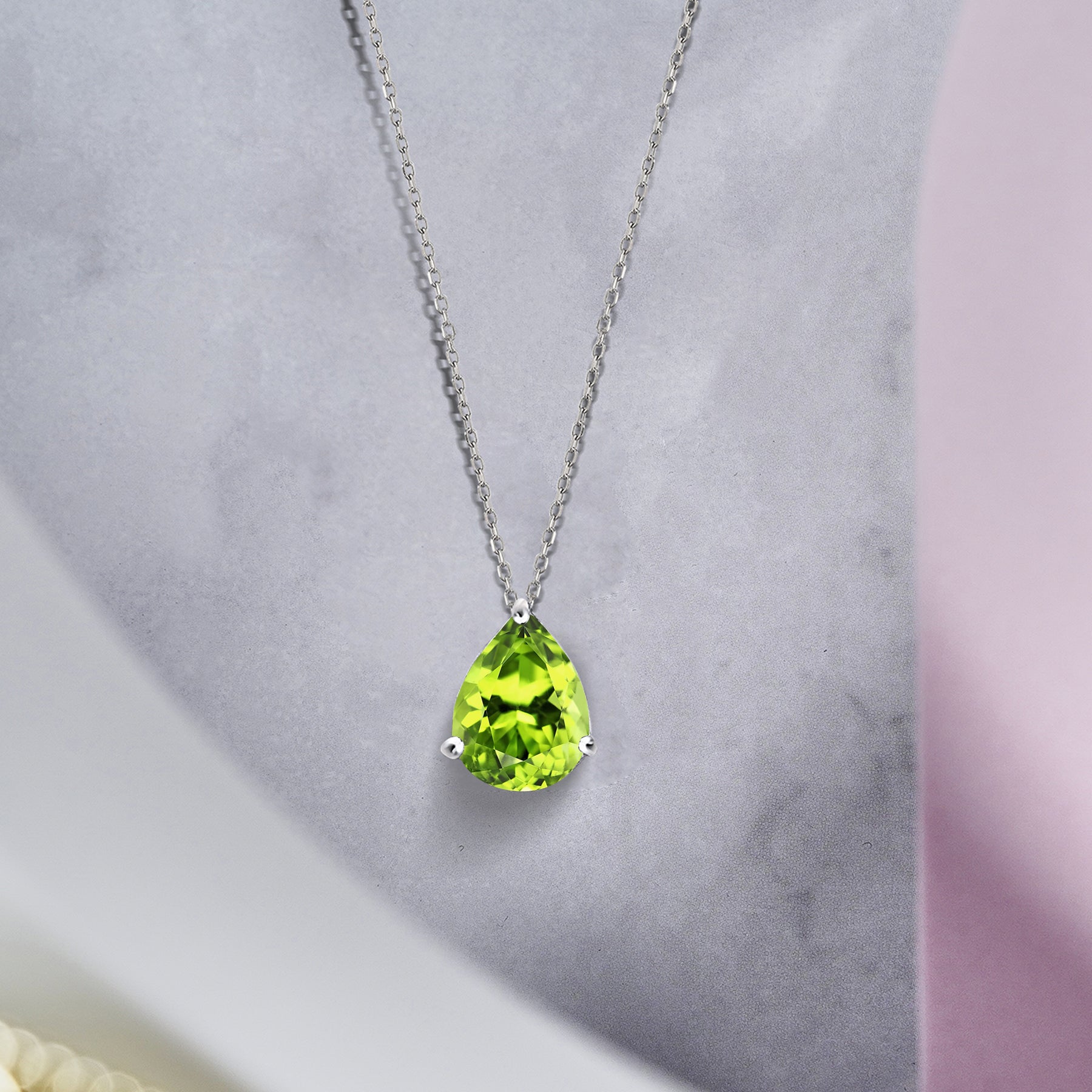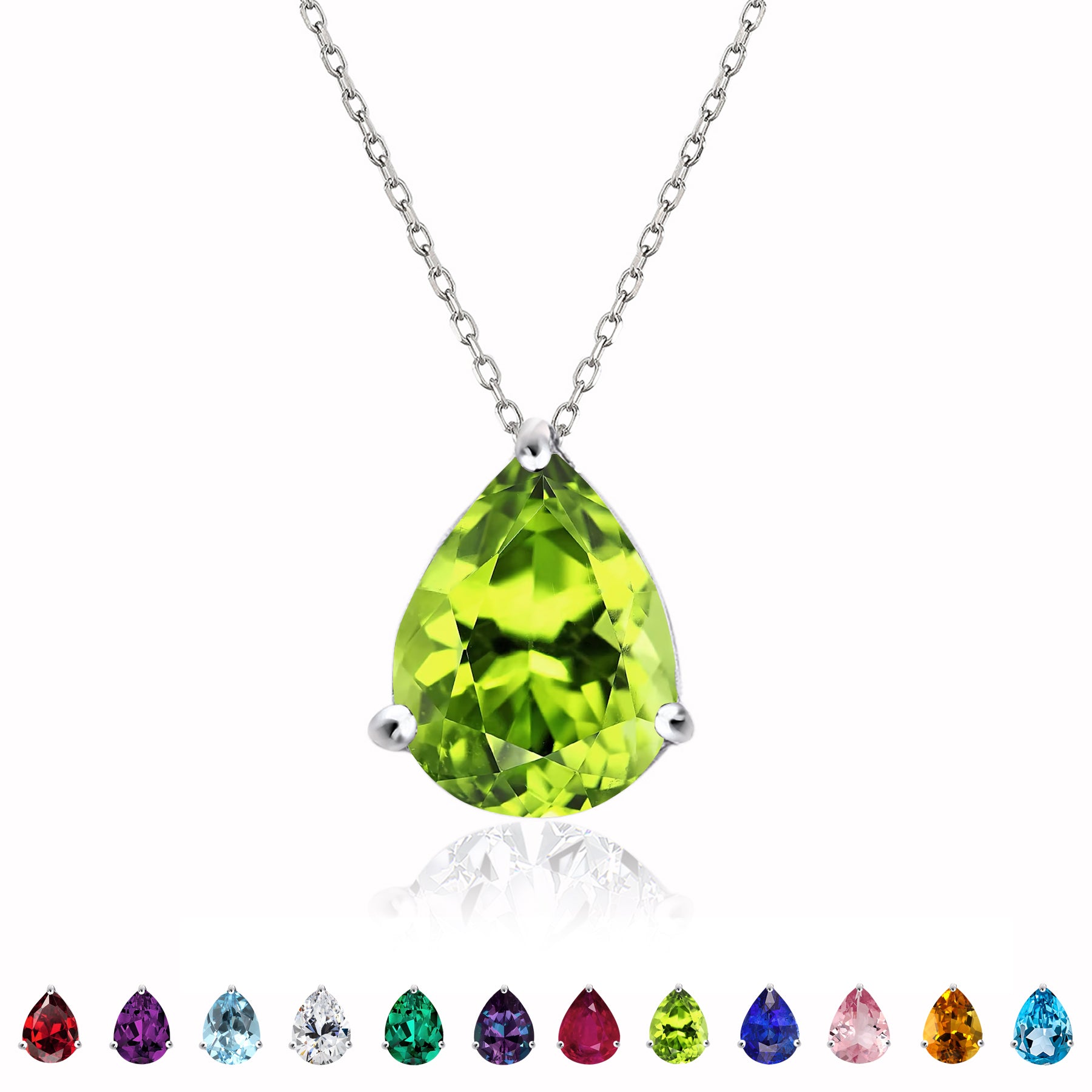 Attract every attention with this Elegant 1.5 TCW Pear Shaped - Peridot - August Birthstone Prongs Solitaire Slider Pendant Necklace in 18K White Gold over Silver, a true embodiment of sophistication at a budget price. This 925 pendant necklace showcases the timeless beauty of a pear-shaped cubic zirconia gemstone set in a prong setting, all elegantly presented in 18K White Gold over Silver. Our pear cut necklace showcases a stunning 1.5 TCW pear cut cubic zirconia gemstone that captures the eye with its radiant brilliance. The slide pendant design adds a touch of classic charm to your look, making this pear solitaire necklace perfect for both formal and casual occasions. This minimalist pendant necklace is the epitome of versatility and comfort, making the Silver slide necklace an ideal addition to your dainty jewelry collection.|Pendant Design: Prongs Set|Total Carat Weight (All Stones): 1.5 Carat|Main Gemstone Type: Cubic Zirconia|Main Gemstone Shape: Pear Cut|Metal Type: 18K White Gold Plating Over Silver|Birthstone Month: August|Condition: New