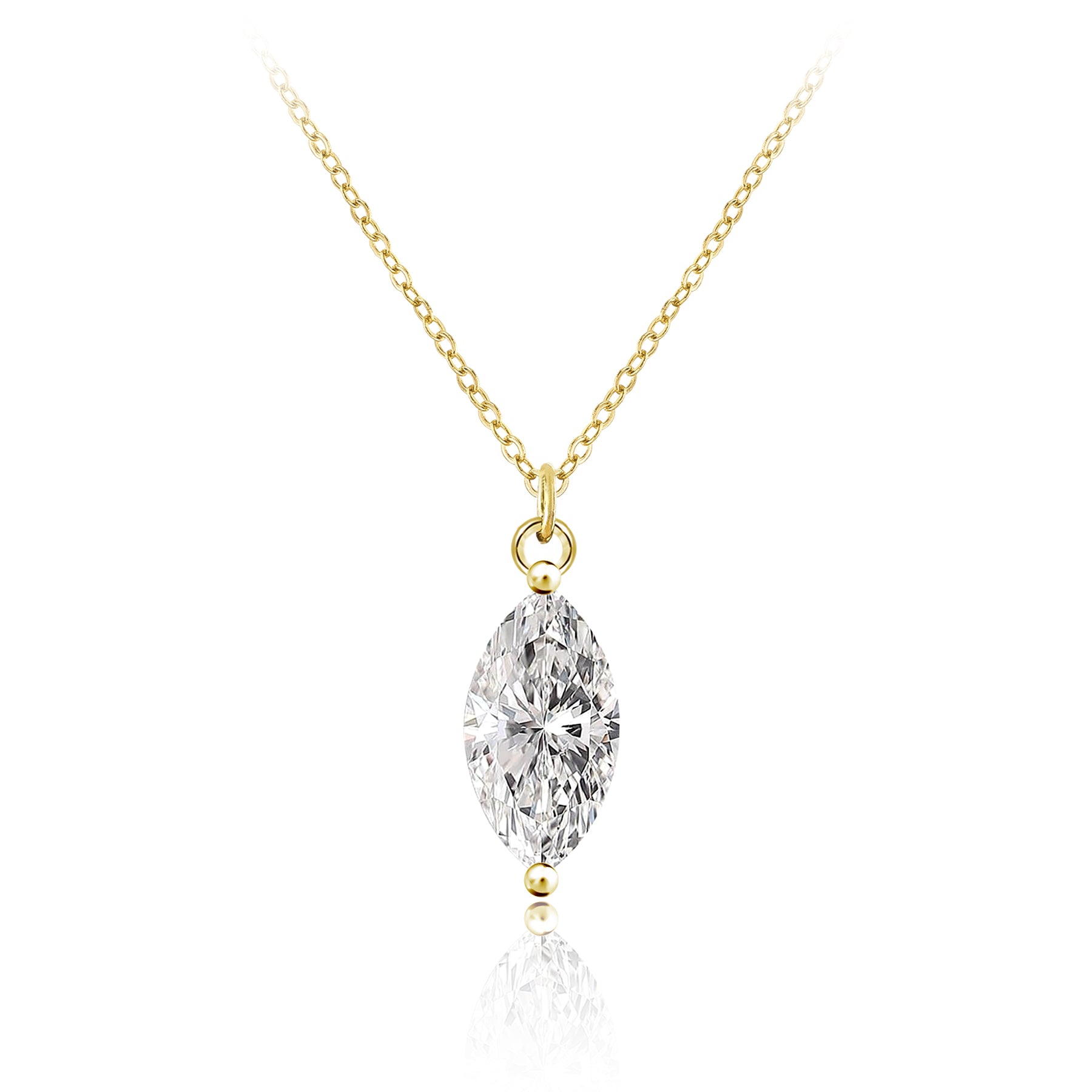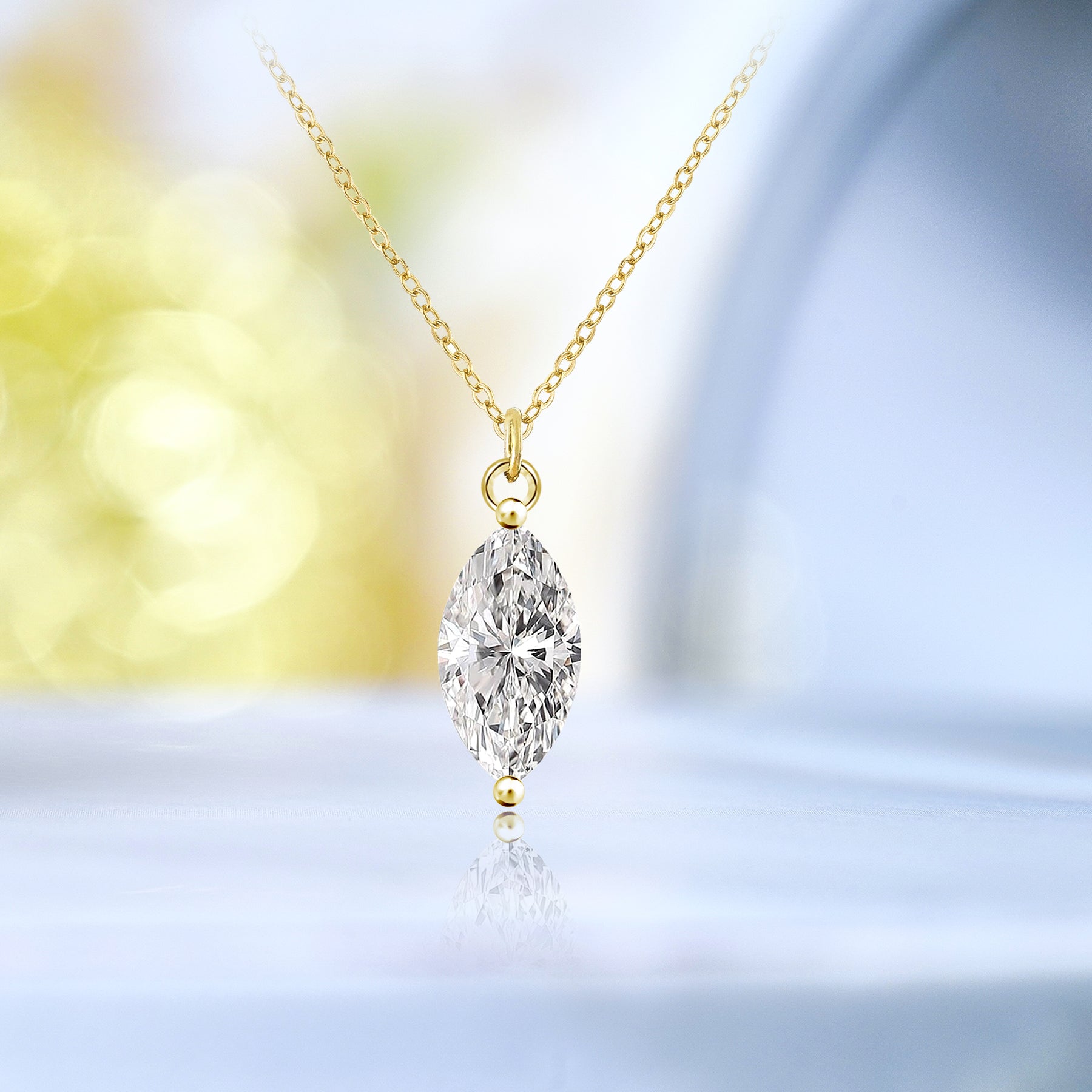 Elegant 1 Carat Marquise Cut Solitaire Floating Pendant Necklace for Her in Silver