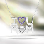 I Love U Mom Multi-Color Purple Stone Embellished Open Heart Pendant Necklace in 18K White Gold over Silver - June Birthstone - Gift for Mom