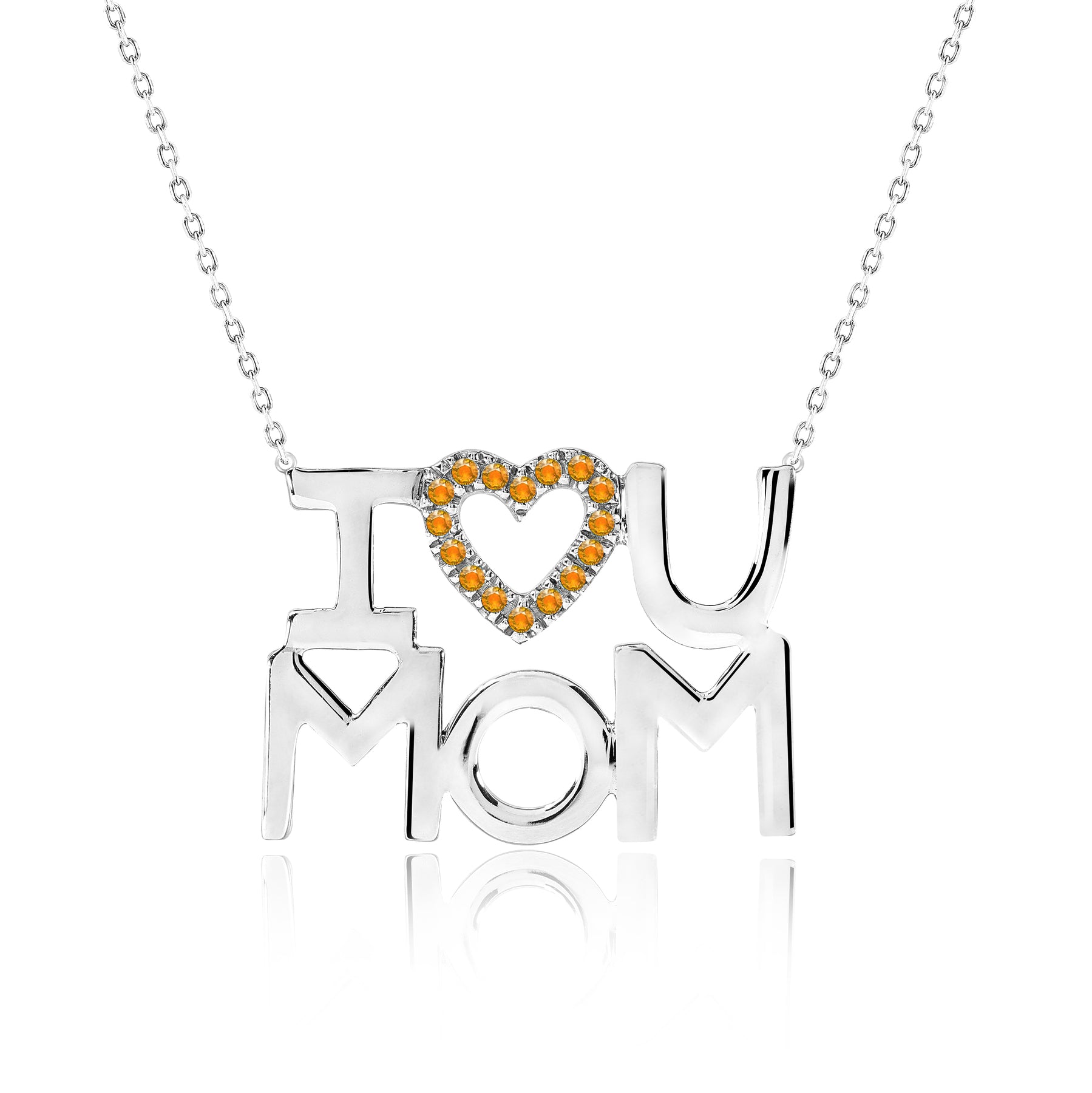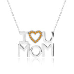I Love U Mom Yellow Stone Embellished Open Heart Pendant Necklace in 18K White Gold over Silver - November Birthstone - Gift for Mom