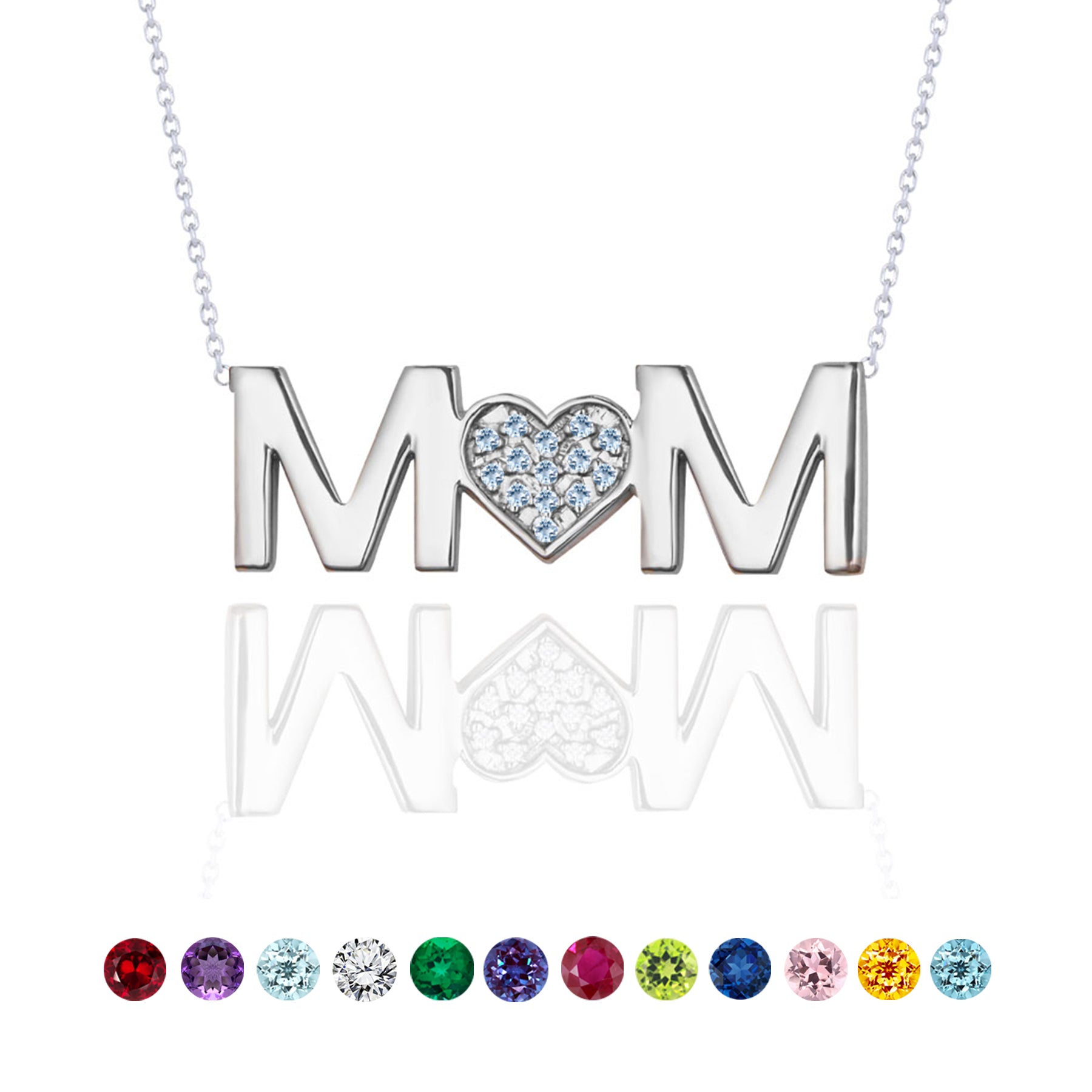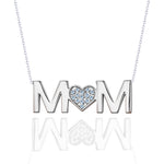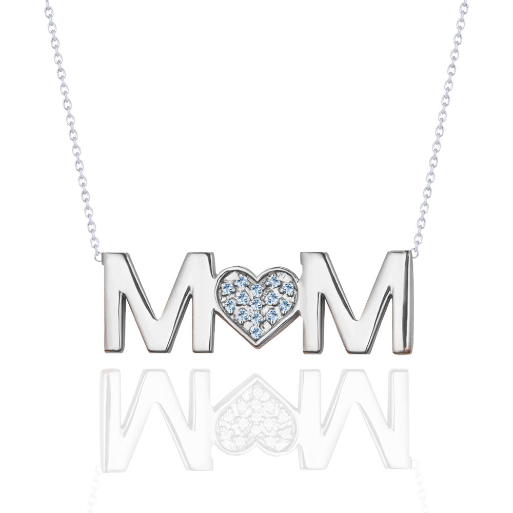 MOM Pendant Necklace - Ice Blue Stone - March Birthstone in 18K White Gold over Sterling Silver