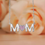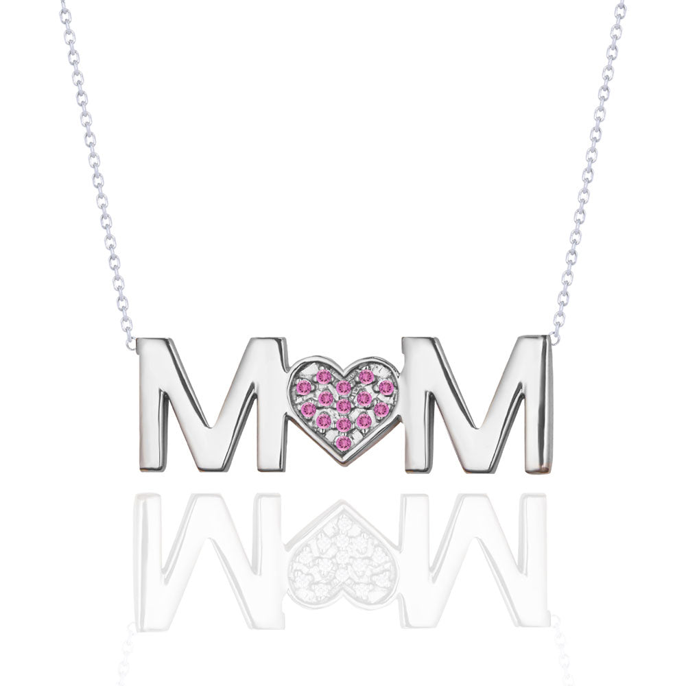MOM Pendant Necklace - Pink Stone - October Birthstone in 18K White Gold over Sterling Silver