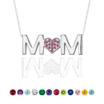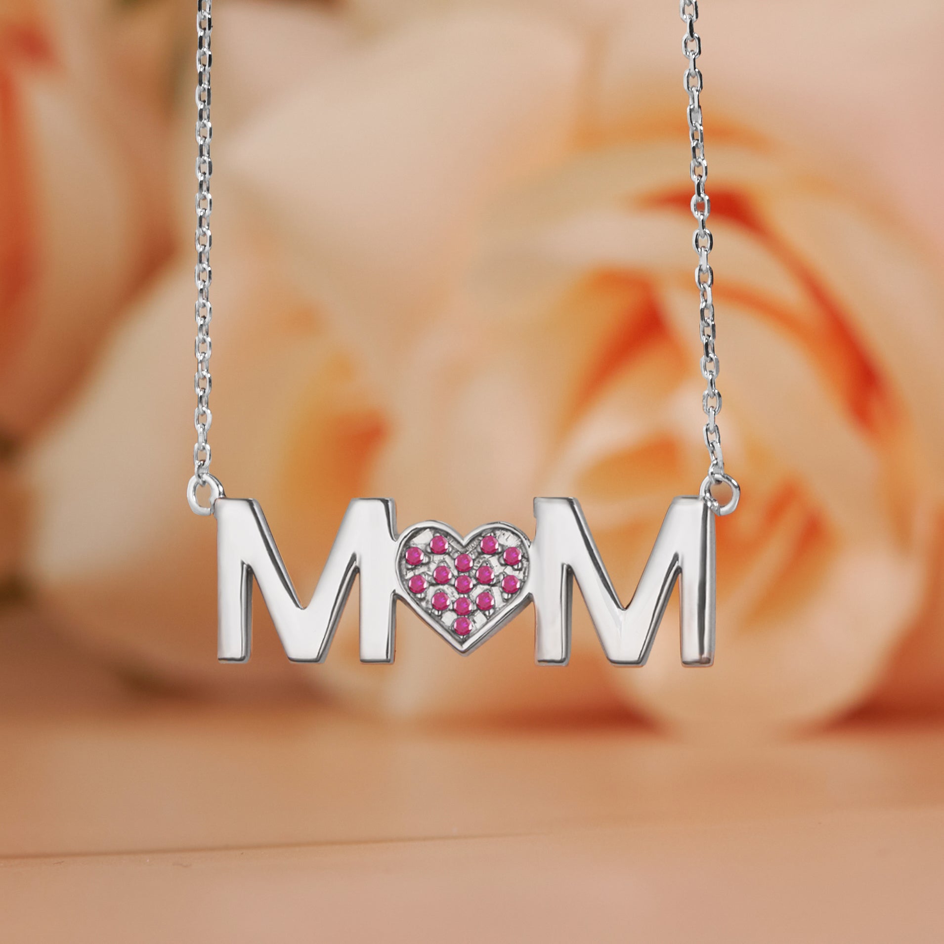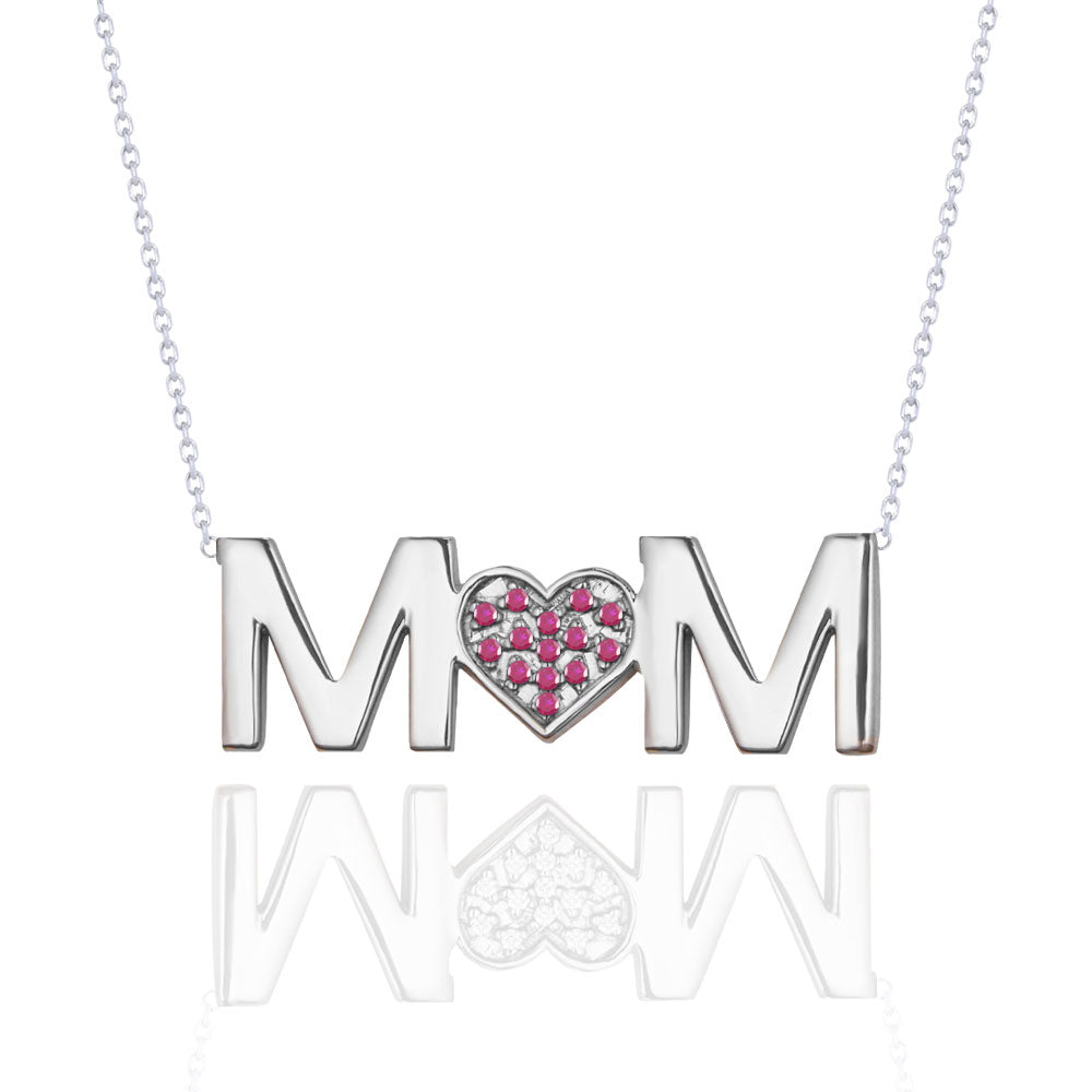 MOM Pendant Necklace - Strong Red Stone - July Birthstone in 18K White Gold over Sterling Silver