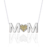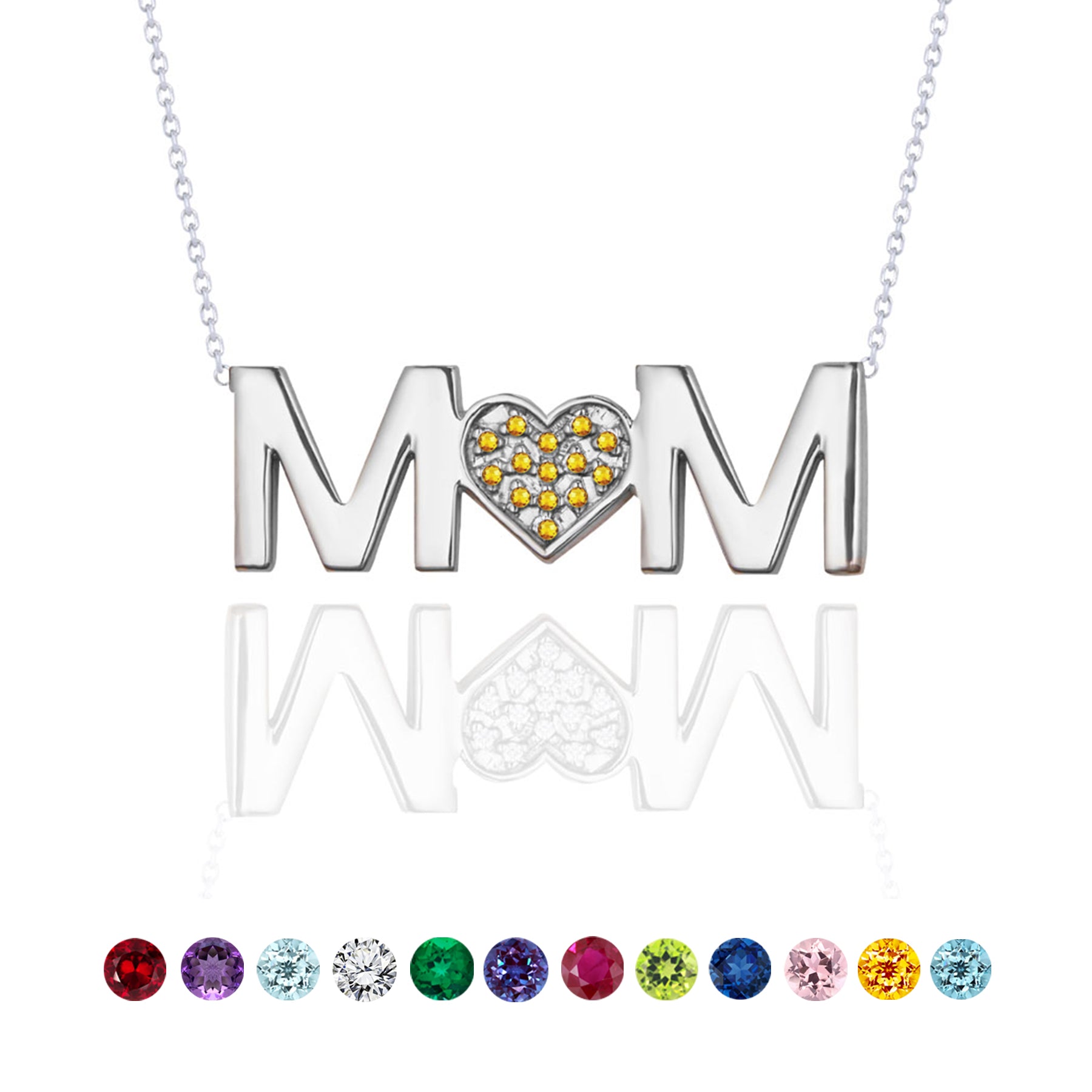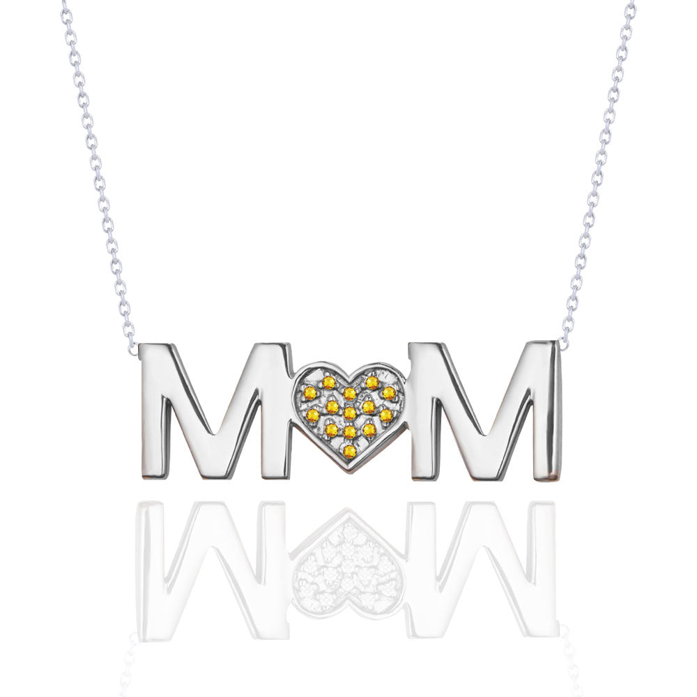 MOM Pendant Necklace - Yellow Stone - November Birthstone in 18K White Gold over Sterling Silver