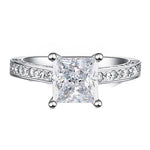 1.75 Carat Princess Cut Moissanite Engagement Ring - Bridal Set - Pave Ring - Promise Ring - 18k White Gold Over Silver