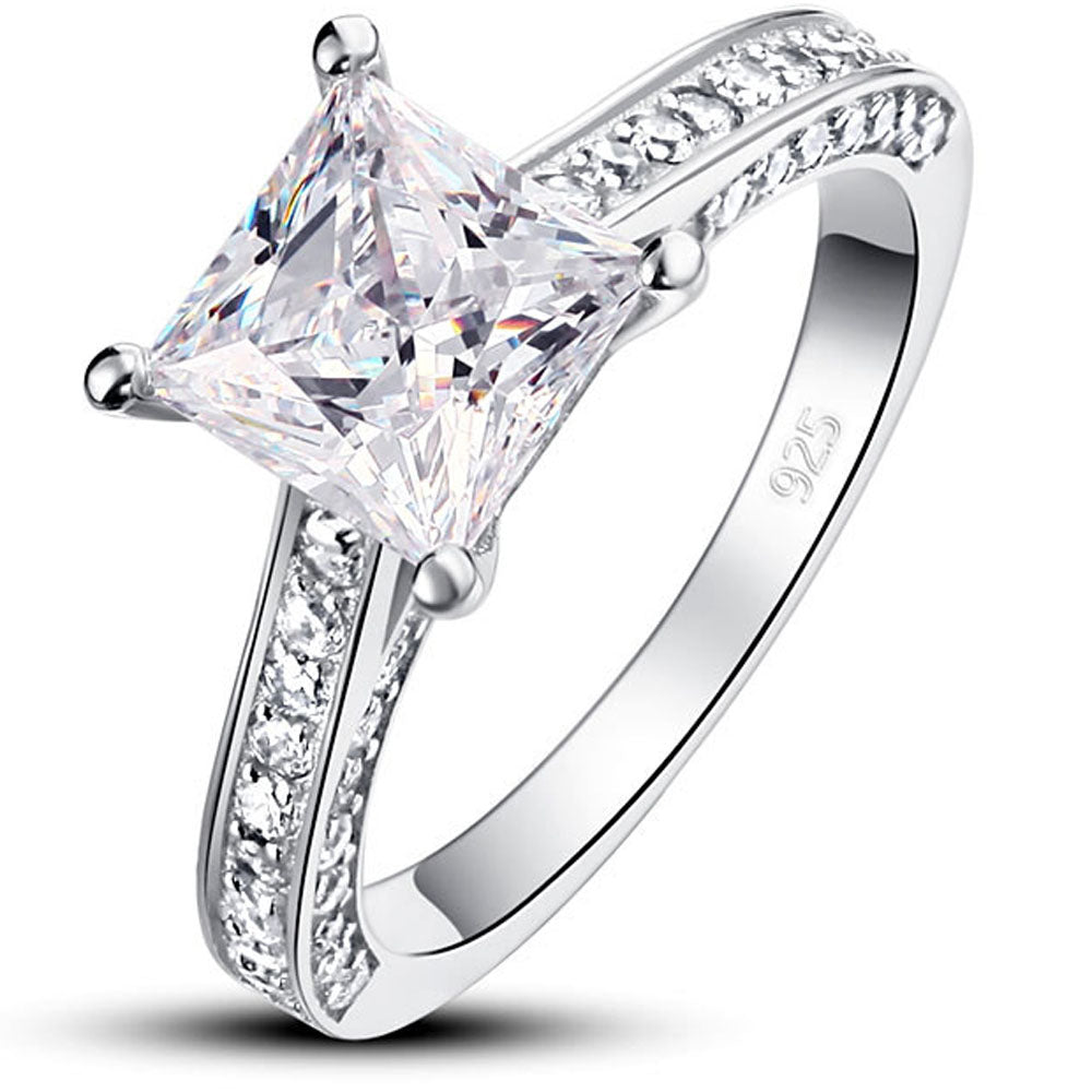 Surprise the woman you love with this stunning 1.75 Carat Princess Cut Real Moissanite Engagement Ring in 18k White Gold Over Silver. The pave design engagement ring is made with natural and real moissanite and 18k gold plating over silver. To add more sparkle, this moissanite engagement ring also features high quality zirconium that surrounds the center stone. This piece of jewelry is handmade, sporting quality craftsmanship that will last for years to come. As always, the order comes with 30 days full refund policy. The beautiful moissanite ring also comes in a very beautiful jewelry ring pouch.