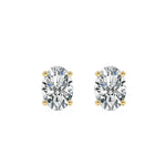 1 Carat Oval Cut Moissanite Solitaire Stud Earrings - 4 Prong - 18K Yellow Gold Plating Over Silver
