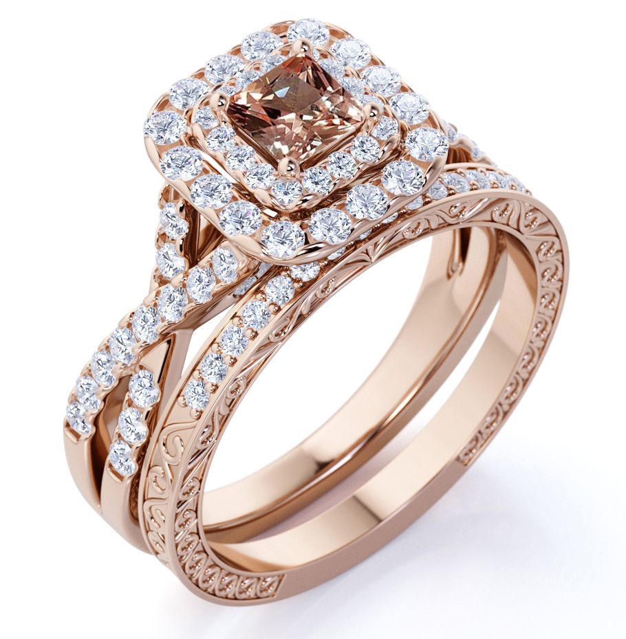 Product Purchased: [1.50 Carat Morganite Diamond Trio Wedding Set in 18K Rose