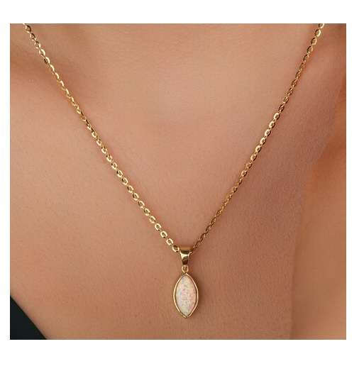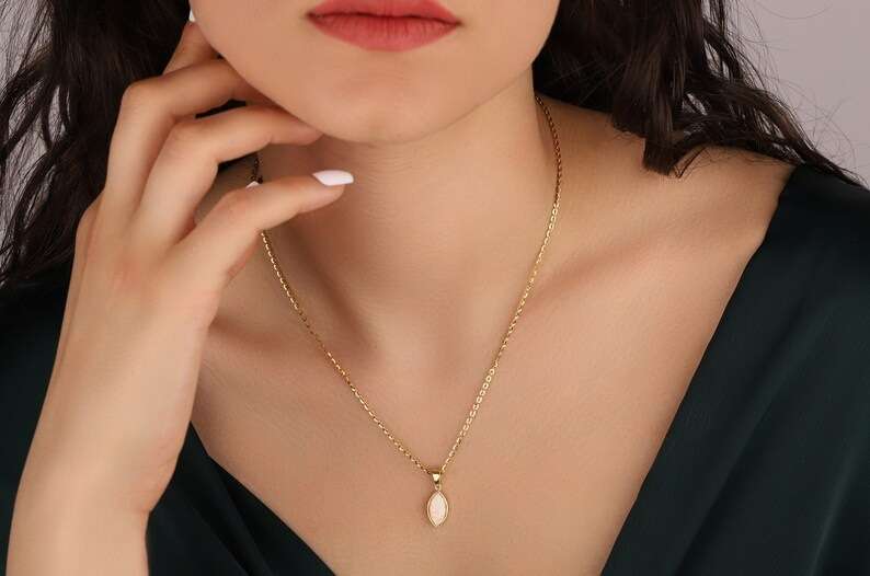 Beautiful 1 Carat Marquise Shape Opal Solitaire Pendant Necklace in 18k Yellow Gold over Silver