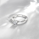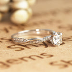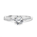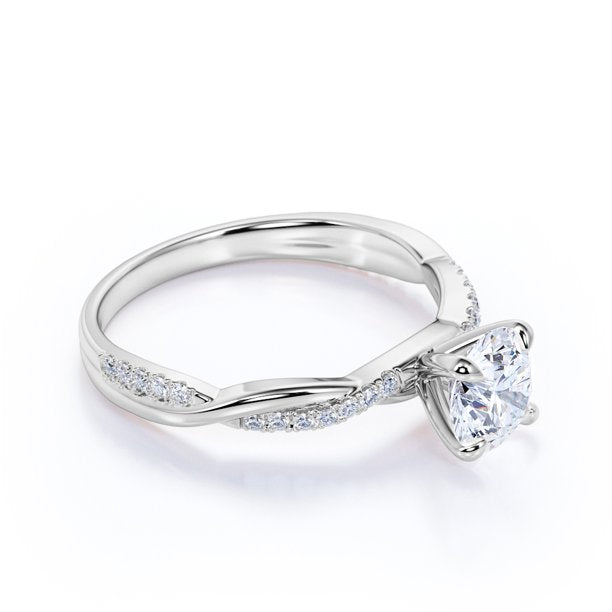 Cathedral Prong 1.25 Carat Round Shaped Moissanite Half Pave Infinity Twisted Shank Engagement Ring In 18K White Gold Plating Over Silver