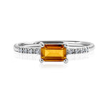 Emerald Cut Citrine - November Birthstone Solitaire Engagement Ring in 18k White Gold Over Silver. The engagement ring is made with colored cubic zirconia of various colors according to the birthmonth stone's color. Your beautiful jewelry ring comes with a 30 Days Full Refund policy. The emerald cut cubic zirconia engagement ring is perfect gift for anniversary, birthday, mothers day, or any other special occasion to celebrate. Total Carat Weight (All Stones): 0.75 Carat|Gemstone Type: Cubic Zirconia|Main Gemstone Shape: Emerald Cut|Birthstone Month: November|Metal Type: 18K White Gold Plating Over Silver|Not-treated|Lab Created|Condition: New