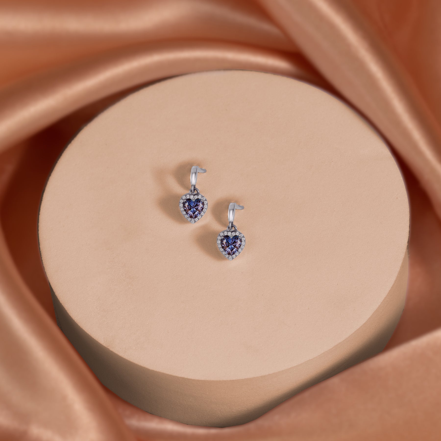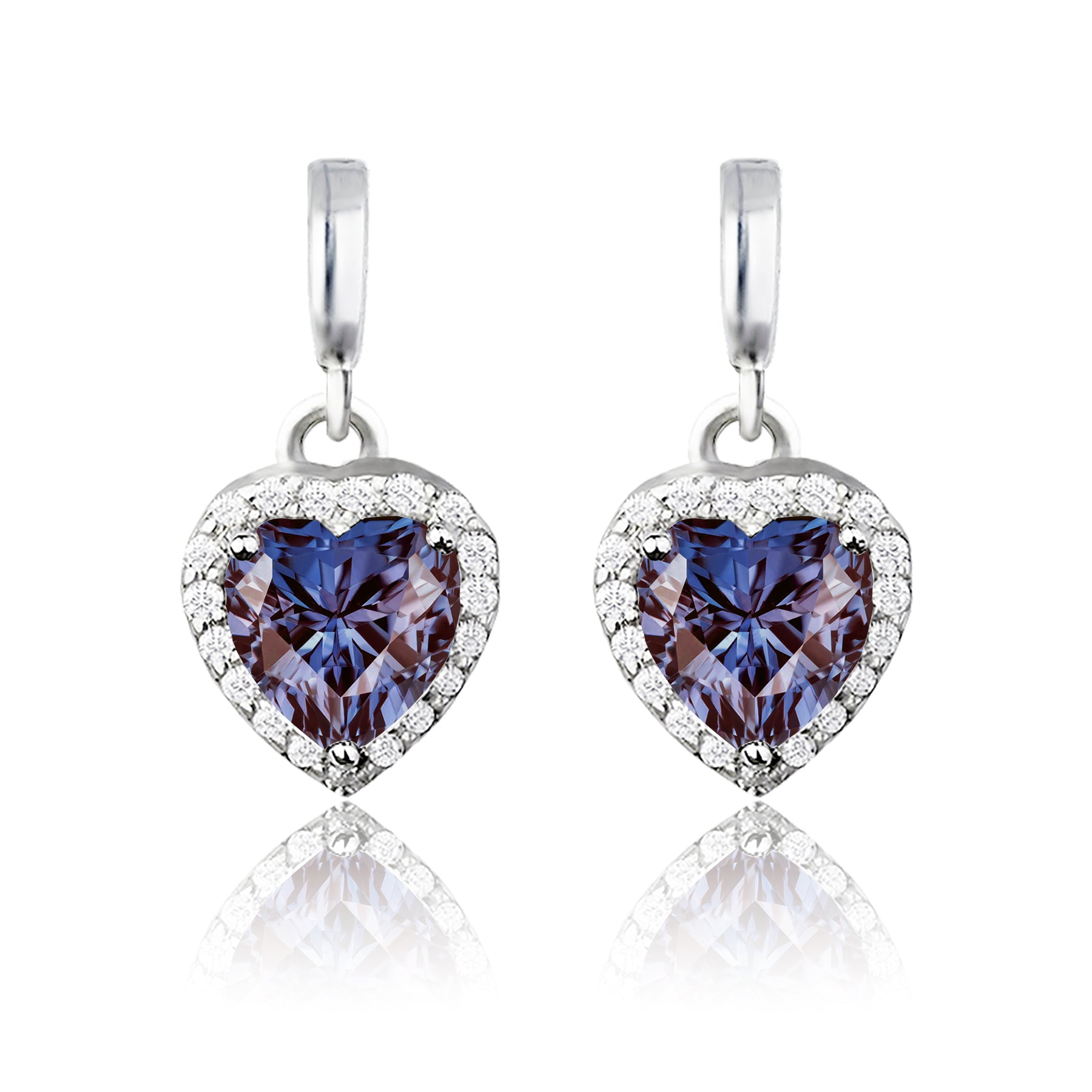 Start the greatest love story of your life with these Forever Heart 1.25 carat - Alexandrite - June Birthstone Earrings in 18K White Gold Plating over Silver. Skillfully hand-cut into a nice heart cut by our experts in lapidary, these appealing cubic zirconia earrings are made up of 1.25 carat cubic zirconia on solid white gold over silver. Special and non-traditional, these dangle earrings are perfect for those who would love to express their charisma and uniqueness. With its glory and clarity, these earrings with cubic zirconia gemstones will enhance happiness and attract positive vibes. These cubic zirconia screwback earrings are beautiful and accessible since it is available at an affordable price. Considered as a symbol of timeless love and affection for your lover, these dangle earrings can be a perfect gift for any occasion like Valentine's day, mother's day or anniversary. Let’s impress her with these cubic zirconia dangle earrings, and, surely, she will not regret it.|Total Carat Weight (All Stones): 1.25 Carat|Main Gemstone Type: Cubic Zirconia|Main Gemstone Shape: Heart Cut|Metal Type: 18K White Gold Plating over Silver|Jewelry Design Type: Dangle Earrings|Birthstone Month: June|Condition: New