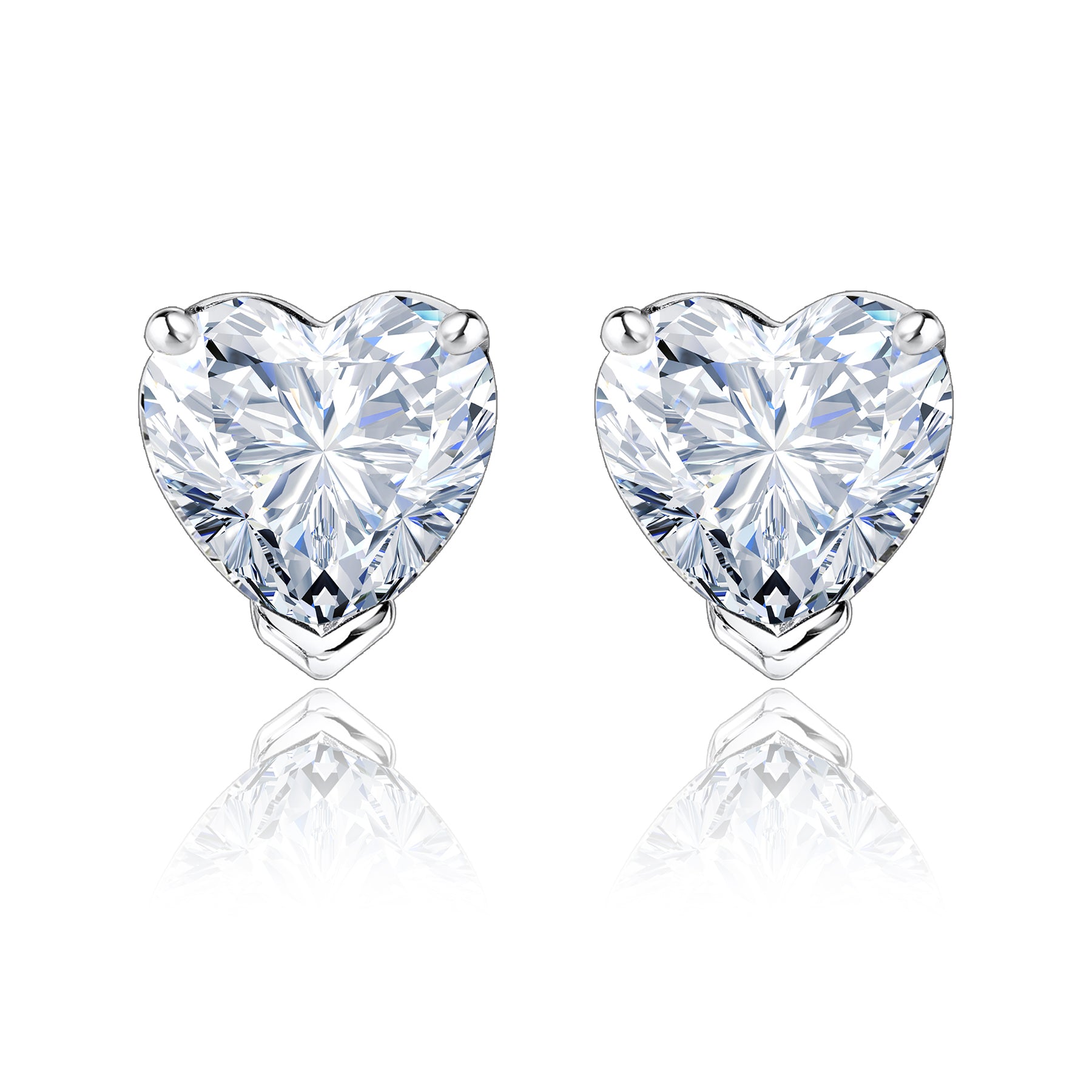 Start the greatest love story of your life with this Gorgeous 1 Carat Heart Cut Cubic Zirconia Solitaire Stud Earrings in 18K White Gold Plating over Silver. Professionally handcrafted into a fine heart cut by our experts in lapidary, this alluring Solitaire Stud Earrings with a Cubic Zirconia stone comprise 1 carat Cubic Zirconia on solid white gold plating over silver. Distinctive and extraordinary, this Solitaire Stud Earrings with a Cubic Zirconia stone are well-suited for those who are not quite into normal lifestyle. With naked eyes Cubic Zirconias look, shine and feel exactly like diamonds. Reflective properties of this Solitaire Stud Earrings with a Cubic Zirconia stone will enhance happiness and attract positive vibes. This Cubic Zirconia solitaire Stud Earrings are beautiful and accessible since they are available at an affordable price. Cubic Zirconias are the most popular alternative gemstone for diamonds while being at lower and more affordable price. Considered as a symbol of timeless love and affection for your lover, this Cubic Zirconia solitaire earrings can be a good choice for any special occasion, i.e. a birthday, an engagement or marriage gift, a Valentines' day gift, etc. In regards to its hardness, Cubic Zirconia is almost as hard as diamond which means that it is notably durable. Let’s impress her with this Cubic Zirconia solitaire earrings and, surely, she will not regret it.|Total Carat Weight (All Stones): 1 Carat|Gemstone Type: Cubic Zirconia|Gemstone Shape: Heart Cut|Gemstone Color: Near Colorless|Metal Type: 18K White Gold Plating Over Silver|Birthstone Month: April|Condition: New