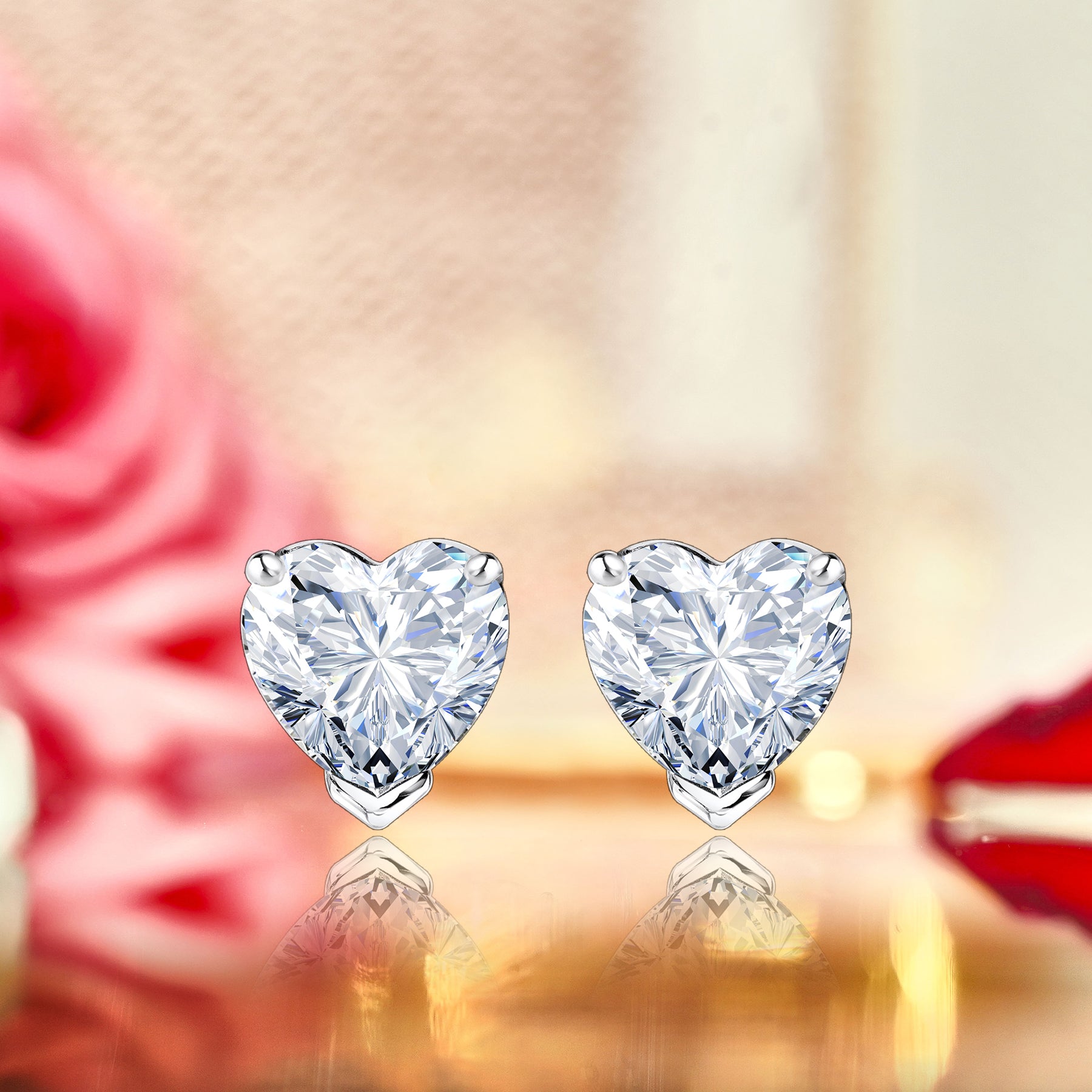 Gorgeous 1 Carat Heart Cut - Cubic Zirconia - April Birthstone Solitaire Stud Earrings in 18K White Gold Plating over Silver