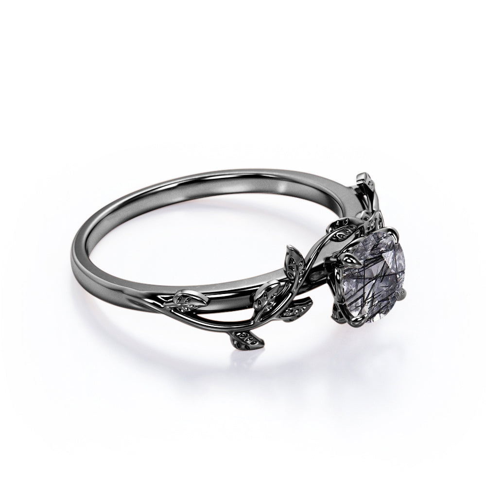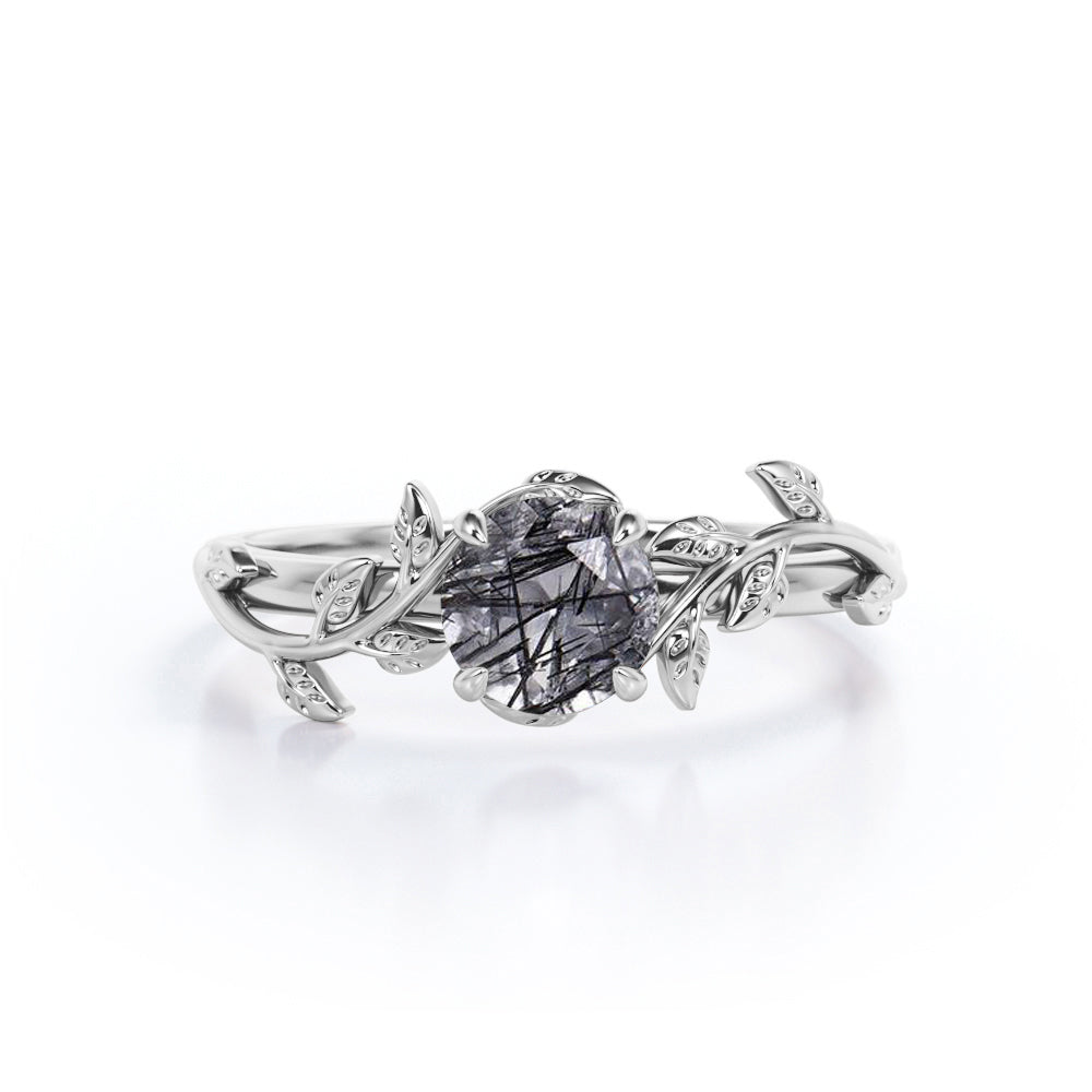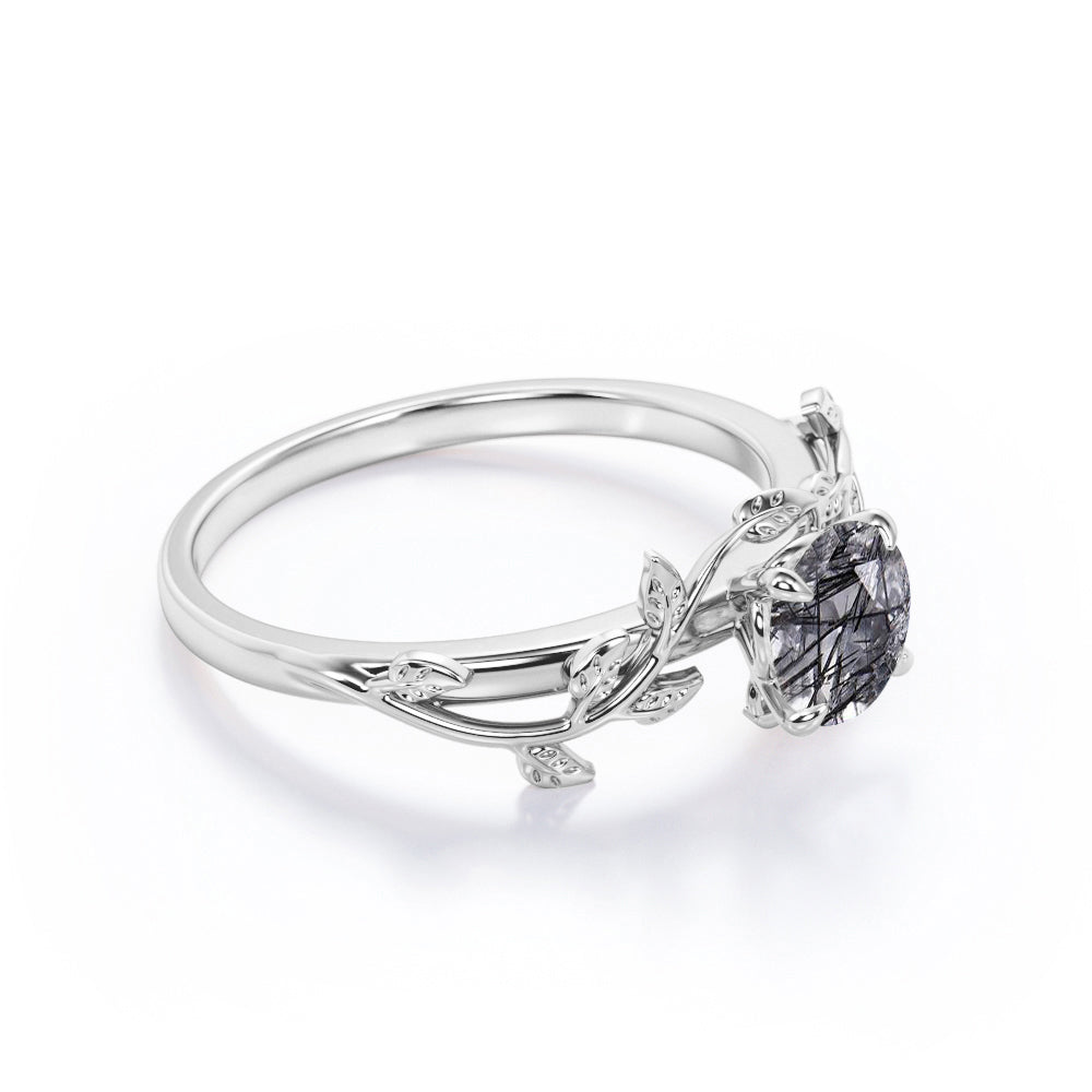 Nature-Inspired 0.50 Carat Round Shaped Natural Black Rutilated Quartz Solitaire Engagement Ring in 18K White Gold Plating over Silver
