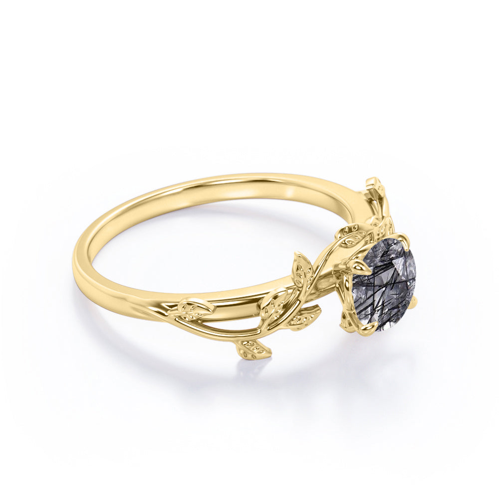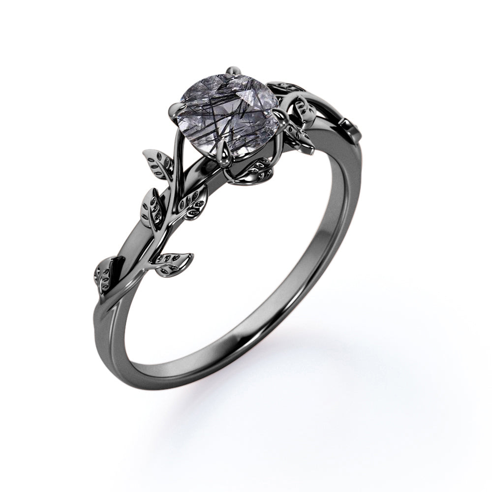 Be shinily standout from the crowd with this Nature-Inspired 0.50 Carat Round Shaped Natural Black Rutilated Quartz Solitaire Engagement Ring in 18K White Gold Plating over Silver. Professionally handcrafted into a fine round cut by our skilled jewelers, this astounding black rutile quartz ring integrates 0.50 Carat black rutilated quartz on solid white gold plating over silver. Distinctive and extraordinary, this black rutilated quartz stone ring is well-suited for those who are not quite into normal lifestyle. With its distinctive needle inclusions, this black rutile quartz ring will enhance happiness and attract positive vibes. This black rutile quartz ring is beautiful and accessible since it is available at a reasonable price. If you are looking for a special gift for your friends or your better half, this black rutilated quartz stone ring will be the greatest choice you will ever make. This black rutilated quartz jewelry can be customized, either in 18K white gold plating over silver or 18K rose gold plating over silver, upon customer request. Let’s impress her with this genuine black rutilated quartz ring, and she will be eternally joyful.