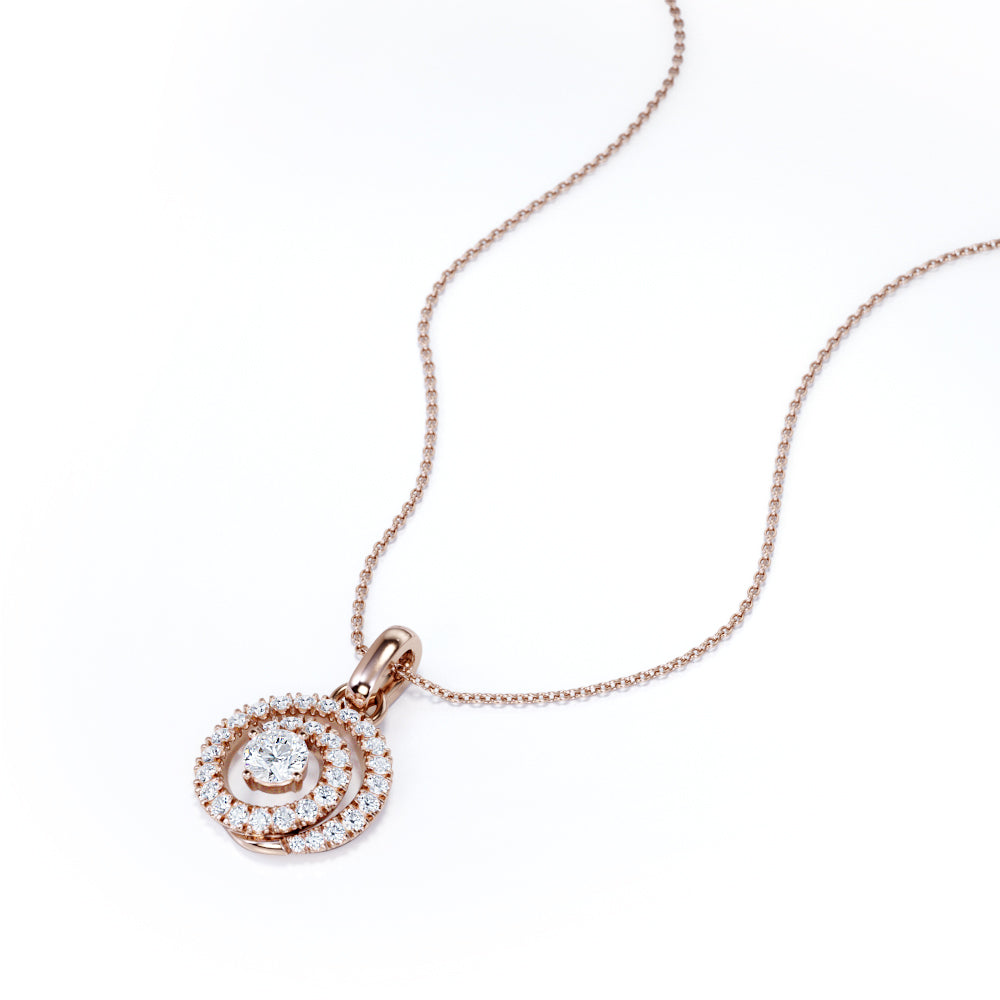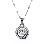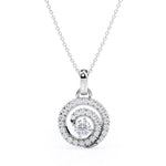 Unusual Circle French Pave 1.25 Carat Round Certified Moissanite and Diamond Journey Pendant Necklace in White Gold