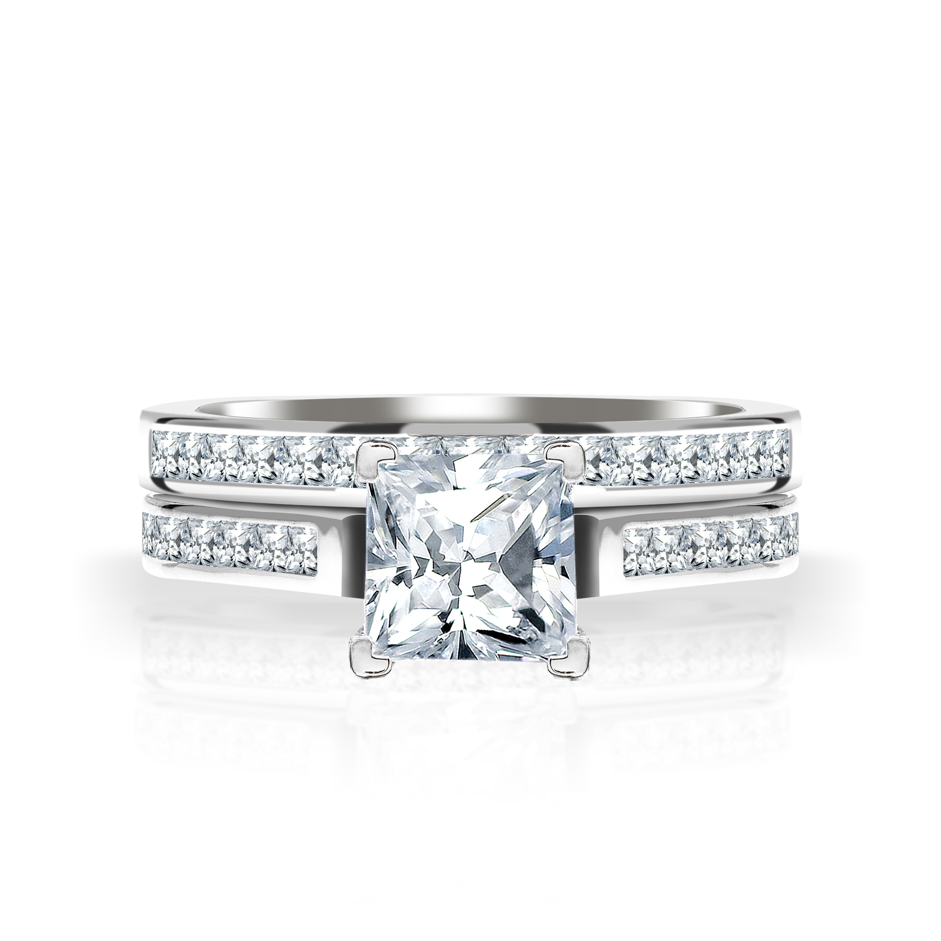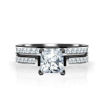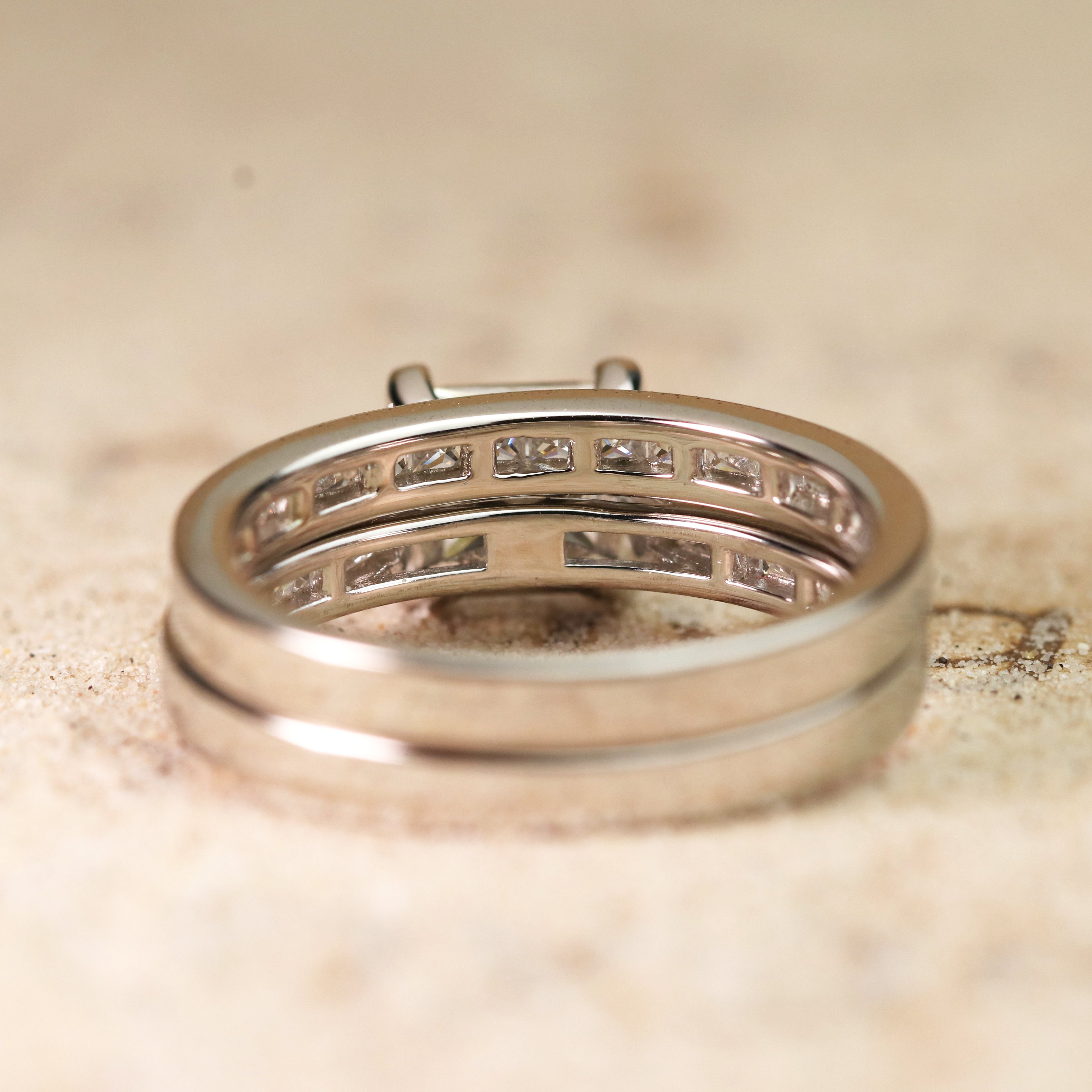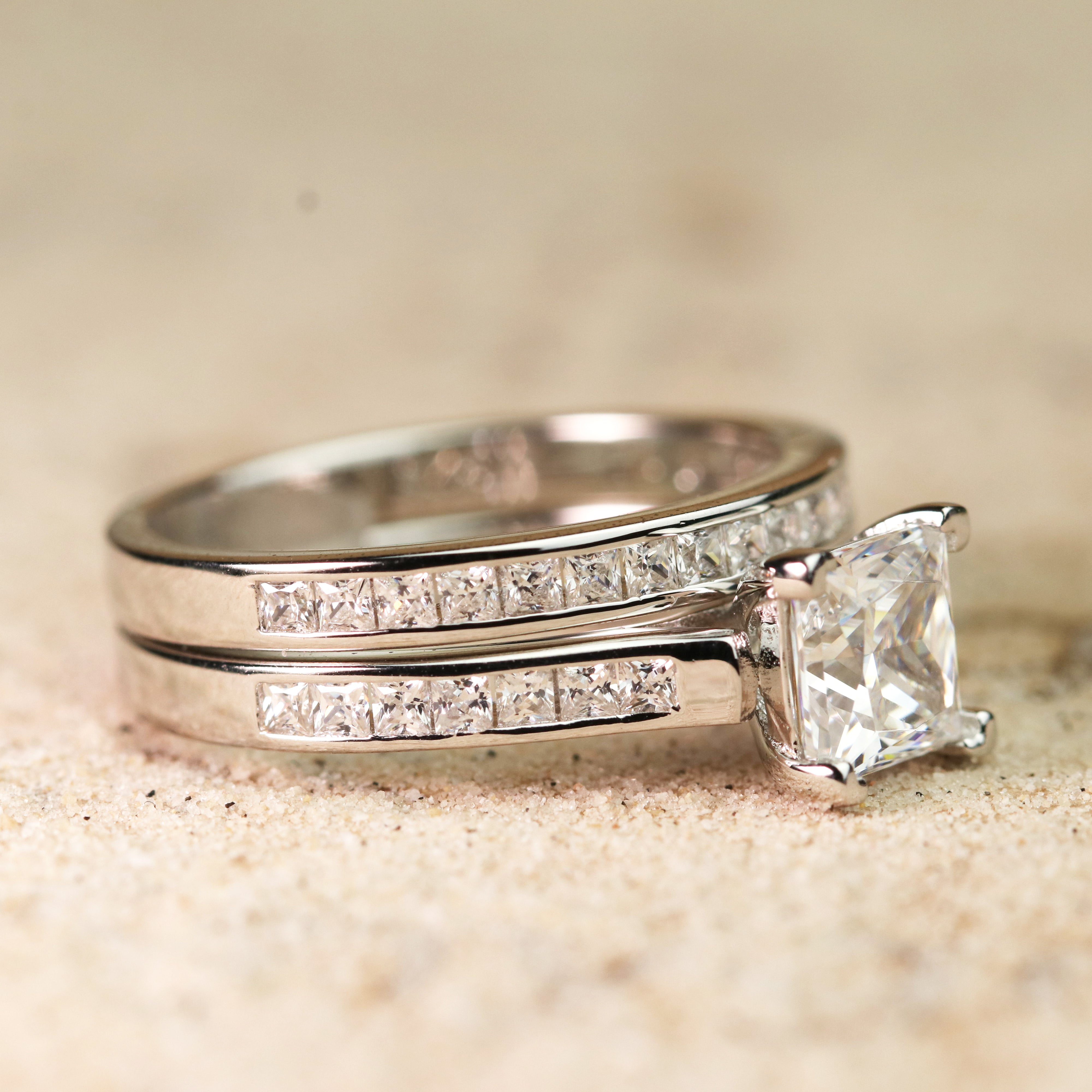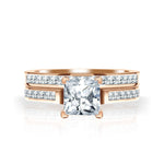 2 Carat Princess Cut Moissanite Wedding Set - Bridal Set - Channel Set Ring - Handmade Ring - 18k Rose Gold Over Silver