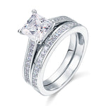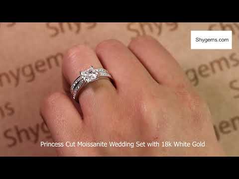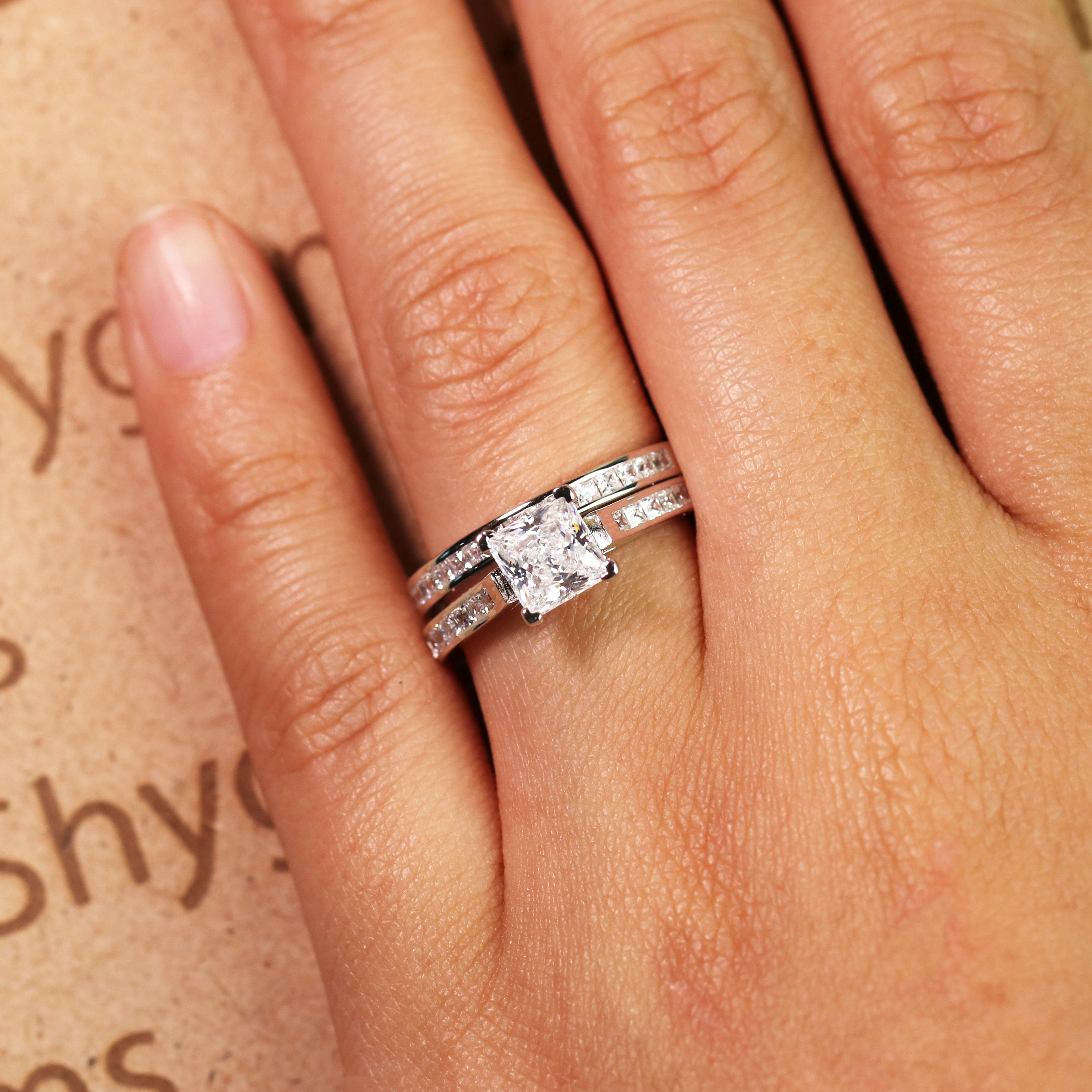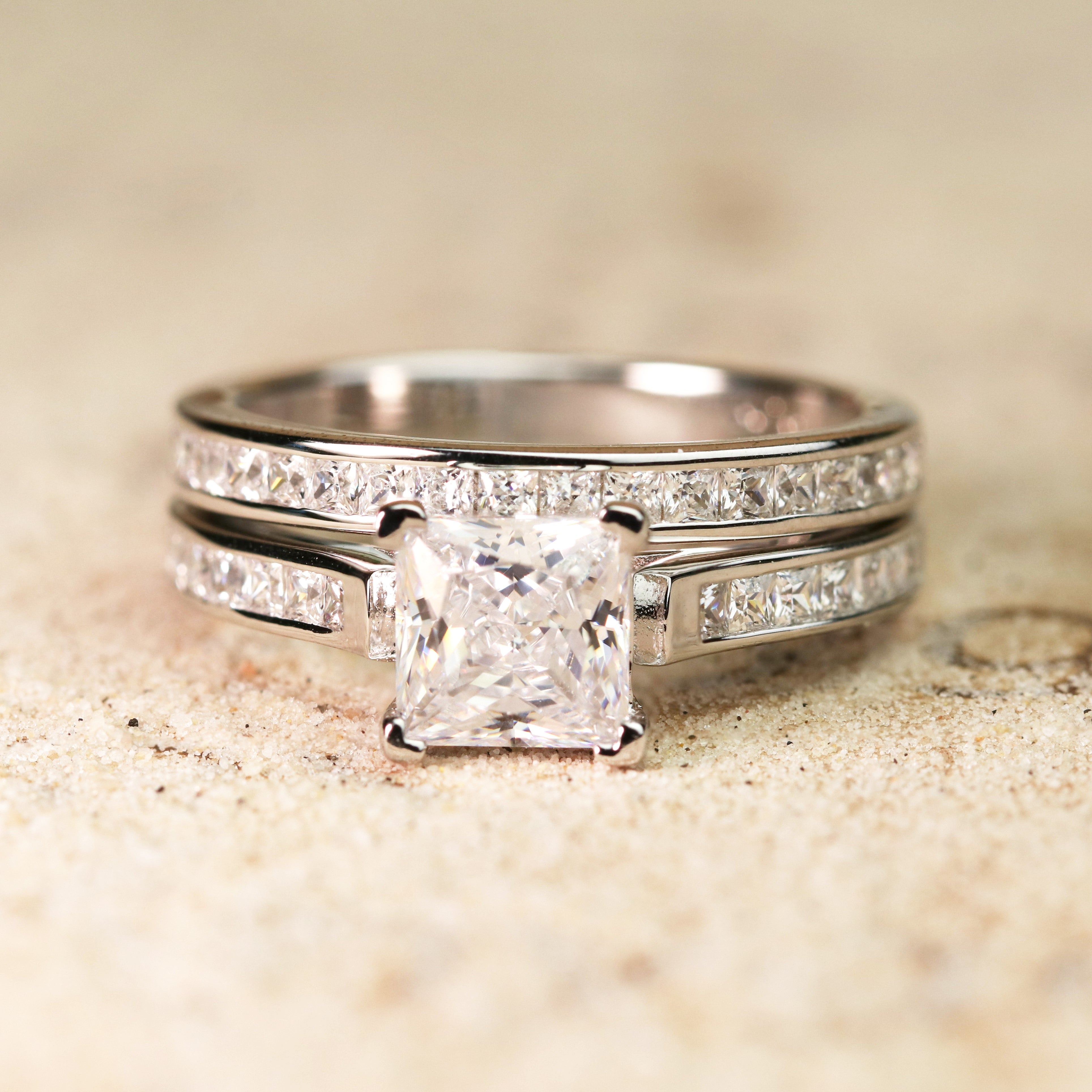 2 Carat Princess Cut Moissanite Wedding Set - Bridal Set - Channel Set Ring - Handmade Ring - 18k Rose Gold Over Silver
