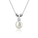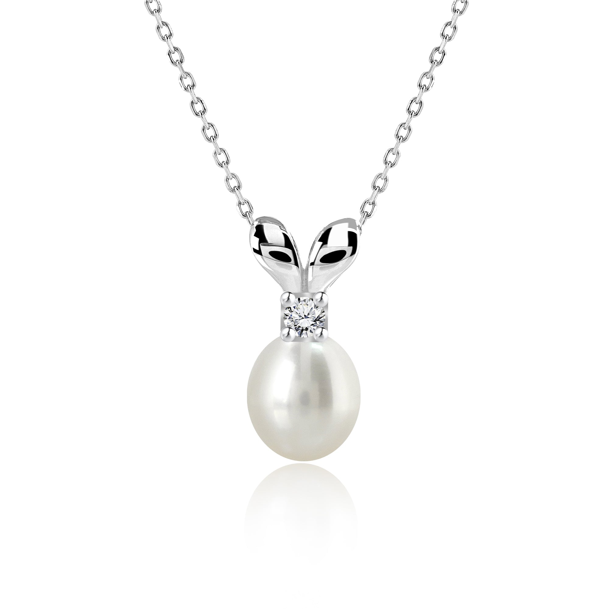 Bunny White Pearl Pendant Necklace with Moissanite for Women in 18K White Gold over Silver