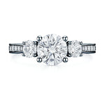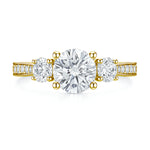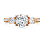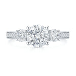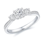 Certified 1 Ct Round Lab Diamond Three Stone Pave Engagement Ring