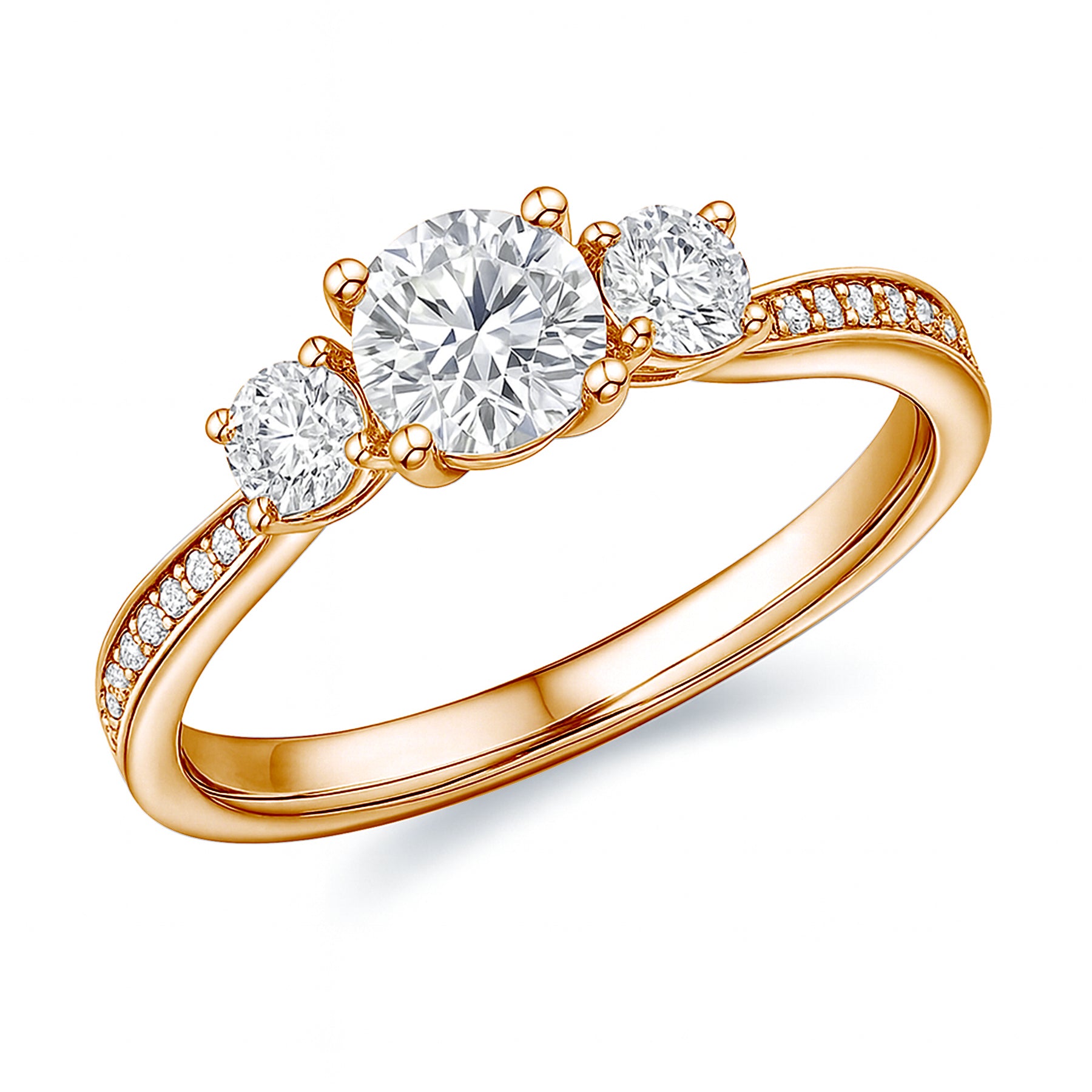 This Certified Lab Diamond timeless three-stone design features a total carat weight of 1 Ct, beautifully symbolizing the past, present, and future of your love story. At its center rests a 0.5 carat round cut lab grown diamond, sparkling with brilliance and grace. The side stones enhance the radiance, while the pavé band adds extra shimmer, and the side stones will be Moissanite. Classic yet modern, This Certified Lab Diamond engagement ring is a perfect symbol of everlasting devotion.