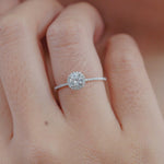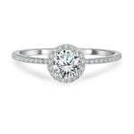 Embellish her finger with this Certified 1 Carat Round Cut Lab Grown Diamond Halo Engagement Ring. Skillfully hand-cut into a nice round cut by our experts in lapidary, this astounding lab grown diamond engagement ring features 0.5 carat diamond. Distinctive and extraordinary, this round cut engagement ring is well-suited for those who prefer an elegant lifestyle. With its glory and clarity, this classic diamond engagement ring will unquestionably be an essential addition to any jewelry collection. Express your affection to her with certified 0.5 carat lab grown diamond halo engagement ring.
