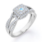With this Double Infinity Split Shank - 1.4 Carat Round Shaped Moonstone and diamond - Flush Cluster Halo Engagement Ring in White Gold, you can make your proposal day unforgettable. Hand-cut with deftness into a lovely shape round cut by our most talented jewelers, this wonderful cheap wedding ring is made up of natural 0.5 carat round Moonstone in the center with 0.9 carat sparkling diamond side stones. Distinct and unusual, this real Moonstone wedding ring is ideal for those who wish to express their charisma and uniqueness. Known for its healing properties, this gem engagement ring is magnificent with its iridescence and luminous shine and will be an unmistakable addition to any jewelry collection. This affordable Moonstone engagement ring is a great choice for any woman's jewelry collection. If you are looking for a Moonstone ring for any special event, such as a birthday, an engagement, or a marriage proposal, this affordable engagement ring is a great option if you are in search for something truly special to give to your special someone. This gem engagement ring can be customized, so customers can choose one of metal colors between rose gold, white gold, black gold, and yellow gold. Let's show her how much you care by giving her this Moonstone band.