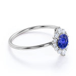 The antique style blue sapphire ring is very famous worldwide and this design is one of our bestselling. The wait is over for those women who are tired of those crazy details which is not necessary for your engagement ring, this minimal blue sapphire ring is the best for you. This minimal dark blue sapphire ring features an approximately .50 carat round cut natural blue sapphire, surrounded by .25 carat authentic diamond accent, for a total weight of 0.75 carats.