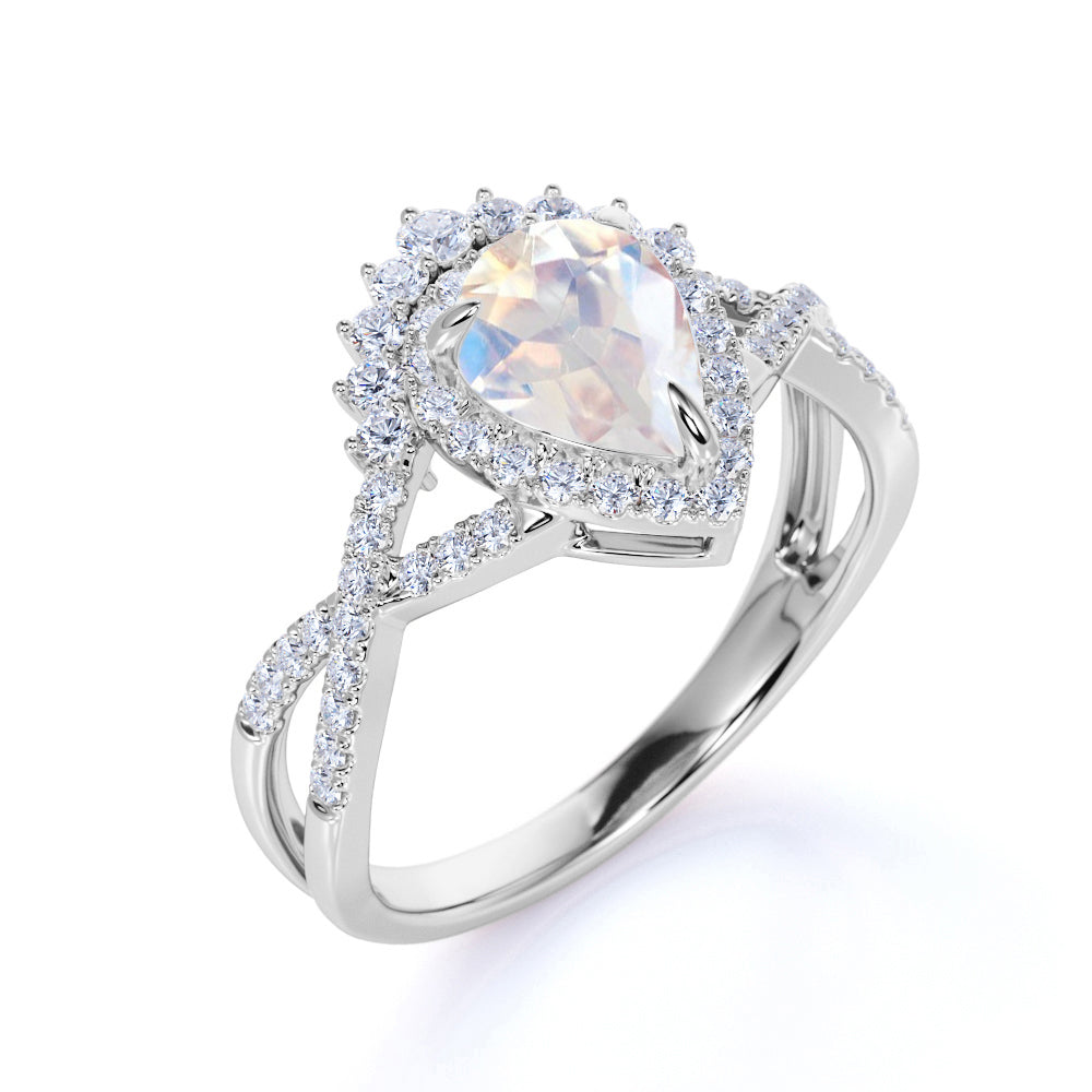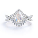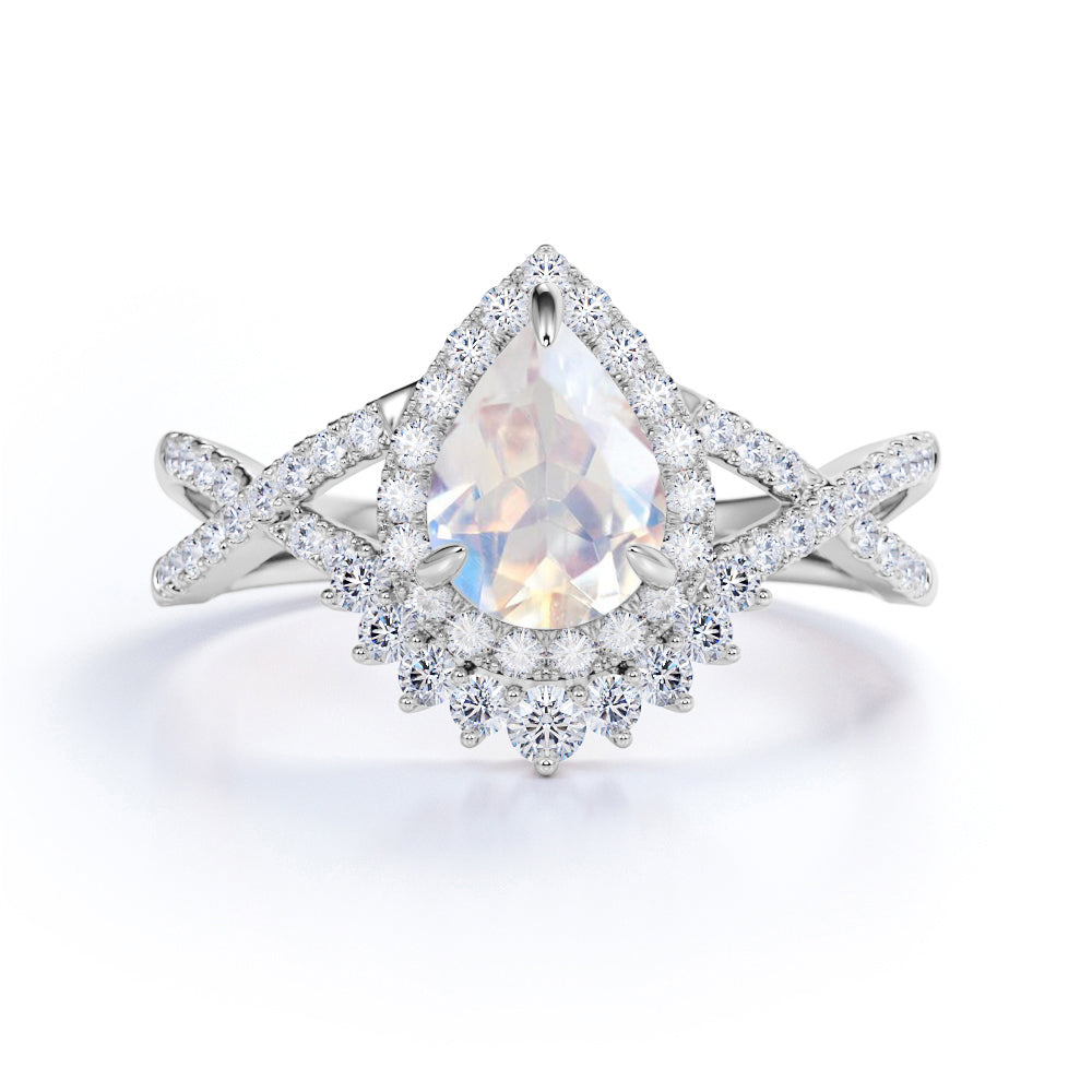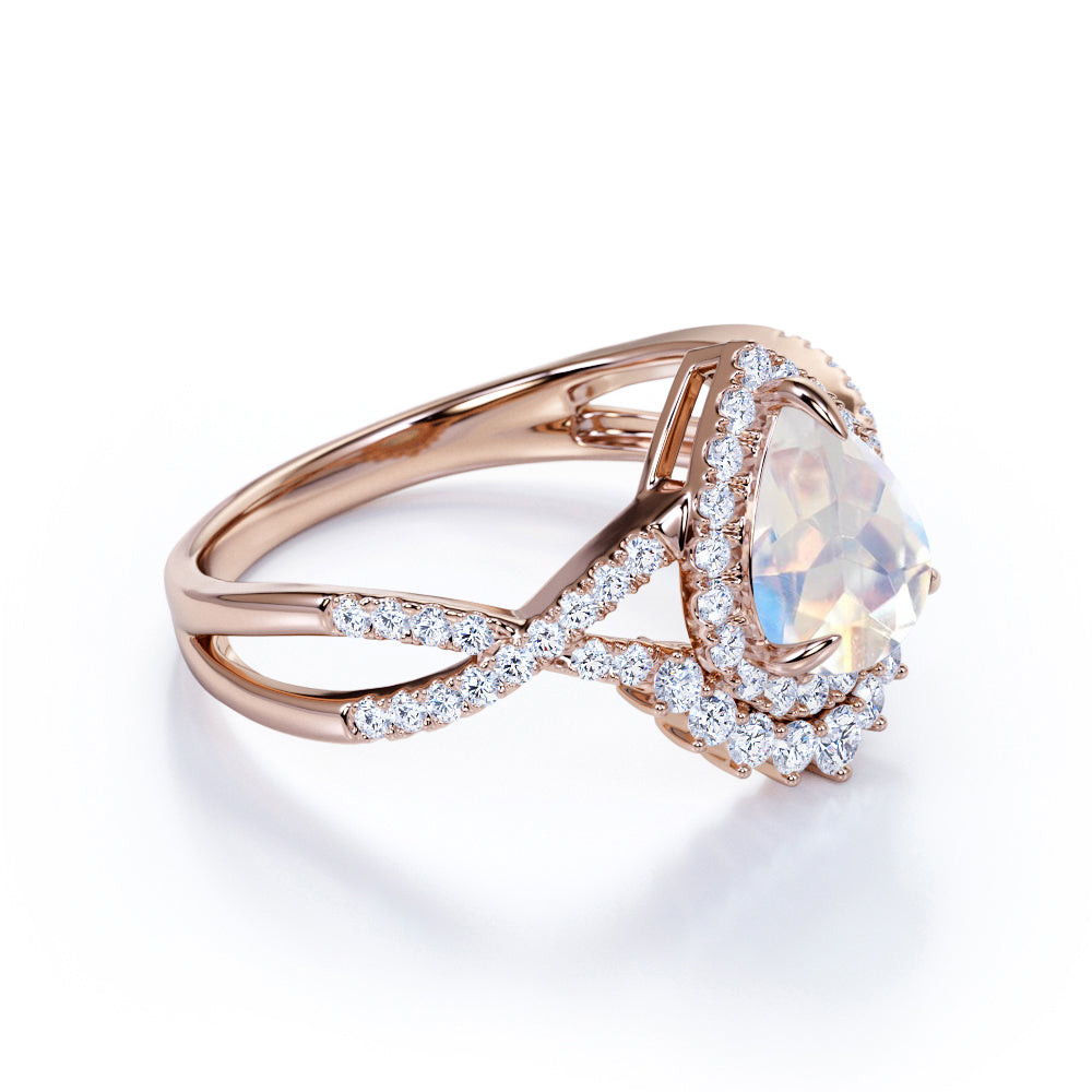 Art Deco 1.5 ct Pear Moonstone Infinity Wedding Set