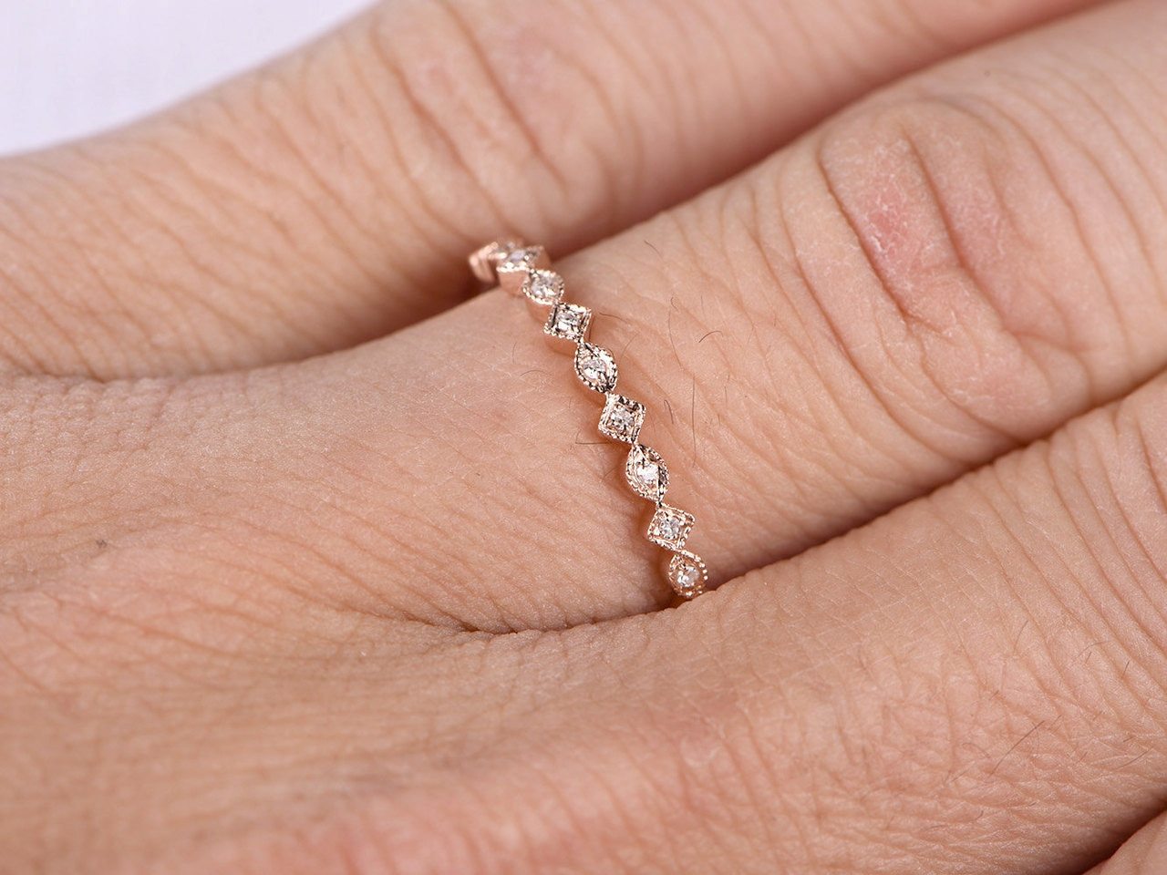 Eternity .50 Carat Round cut Diamond Wedding Ring Band Art deco design in Rose Gold