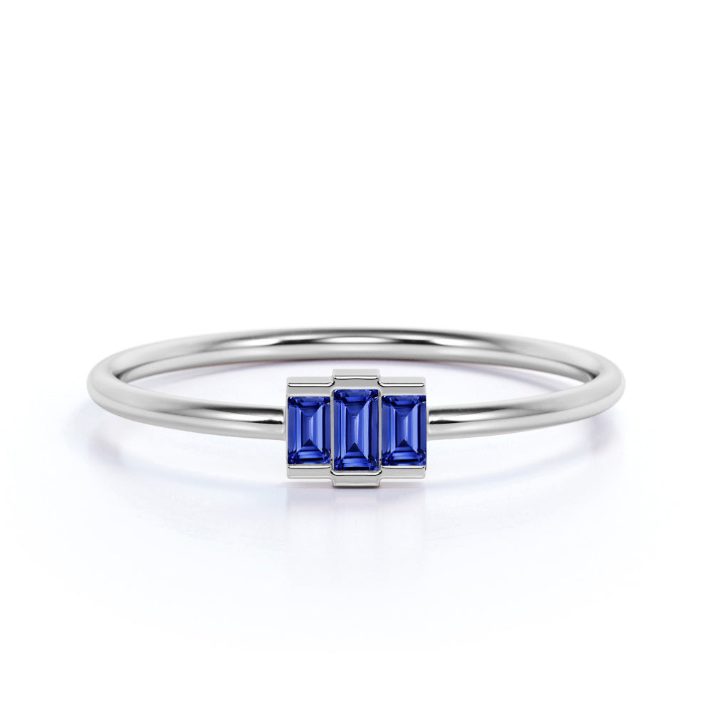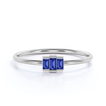 If you are done with all the unnecessary crazy design, this small blue sapphire ring is for you. This petite corn blue sapphire ring is so beautiful and durable despite its dainty look. This minimalist triad blue sapphire ring features an approximately .45 carat baguette cut certified blue sapphire.
