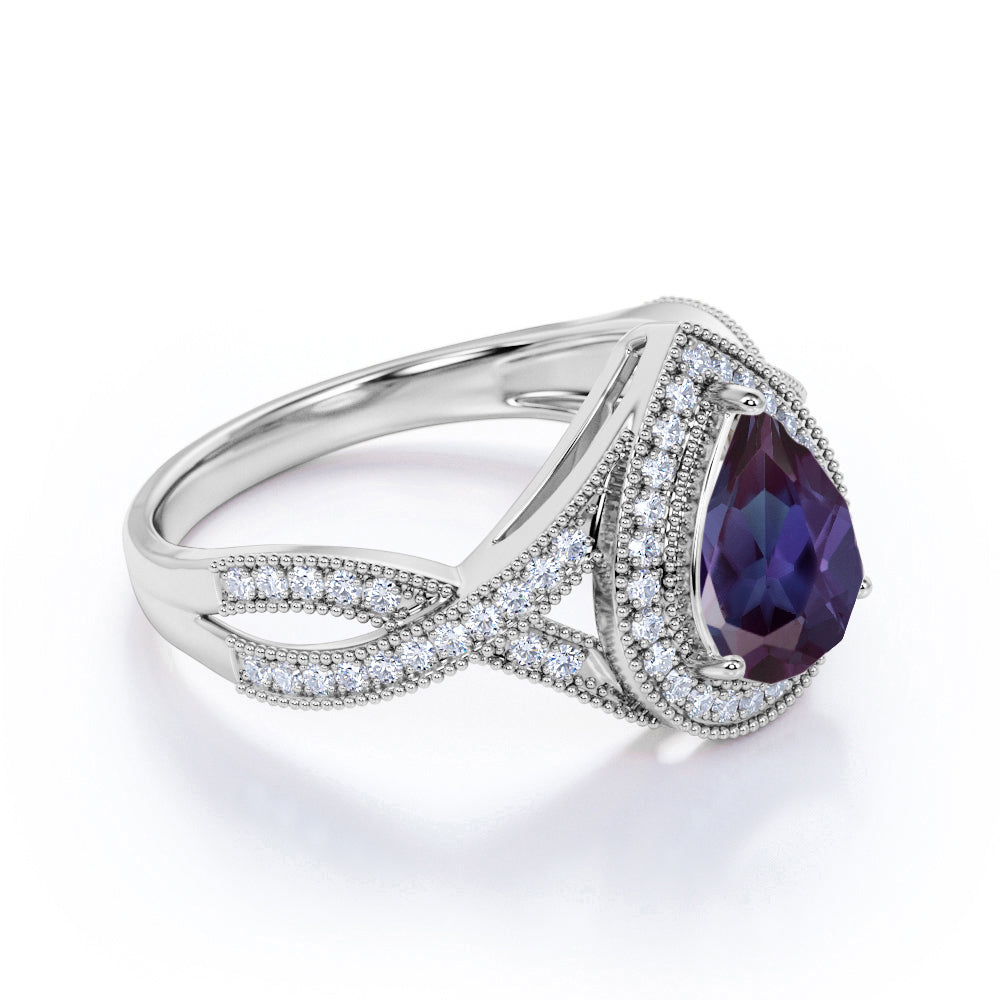 Infinity 1.50 Ct Pear Lab Alexandrite Engagement Ring