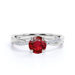 Infinity Style 1.25 Carat Round Cut Lab Ruby and Diamond Engagement Ring in White Gold