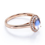 Massive 1.25 Carat Oval Dark Blue Moonstone and Diamond Halo Engagement Ring in Rose Gold