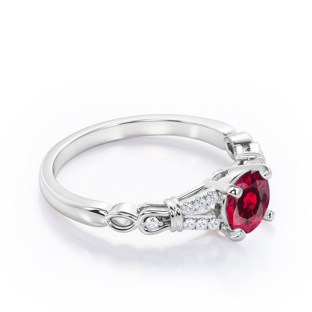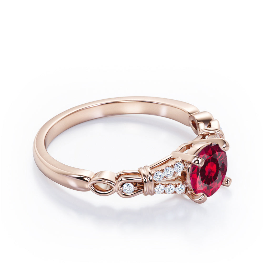 Split Shank 0.6 carat Round Lab Ruby and Diamond Engagement Ring in Rose Gold