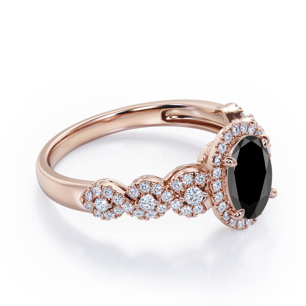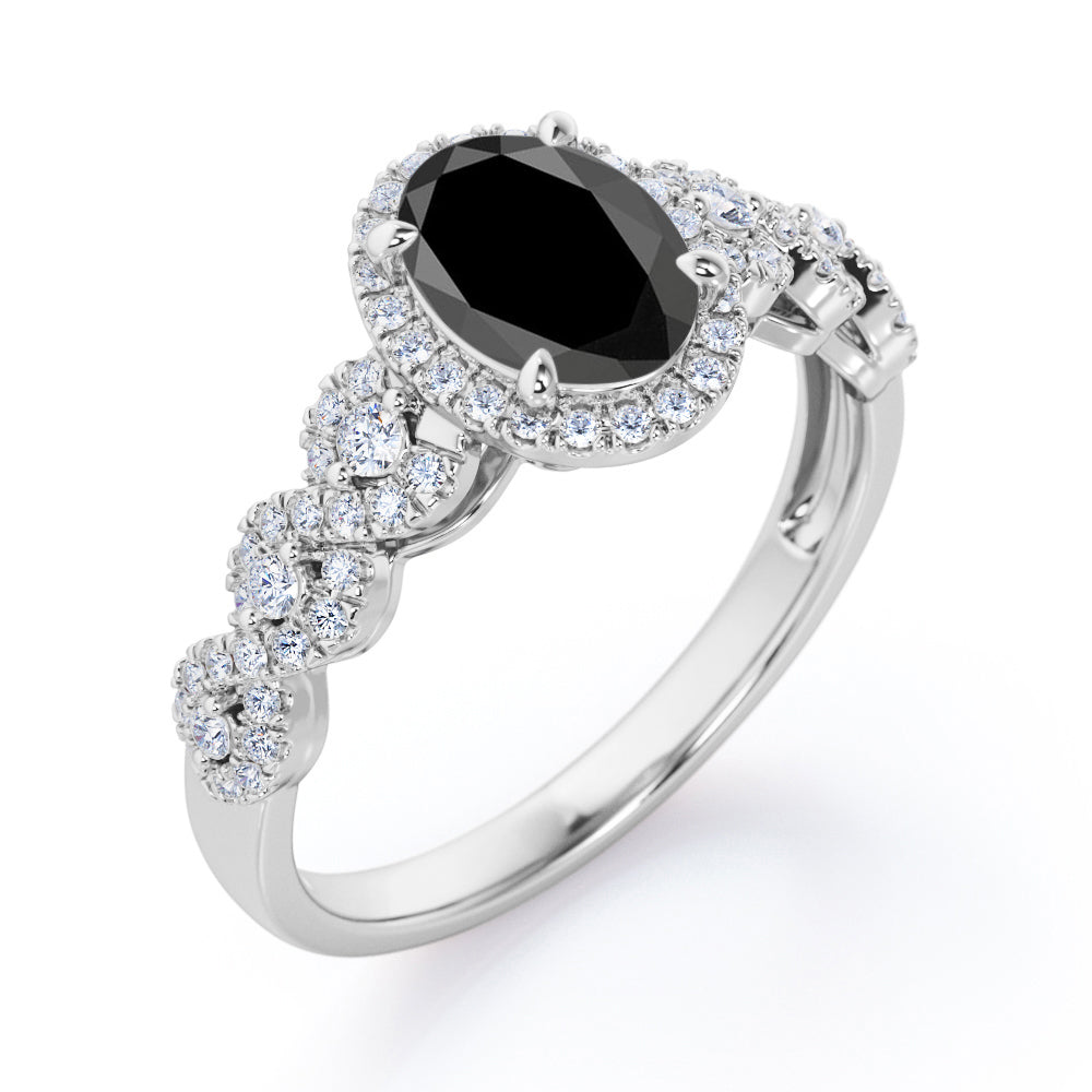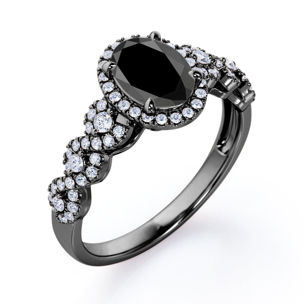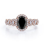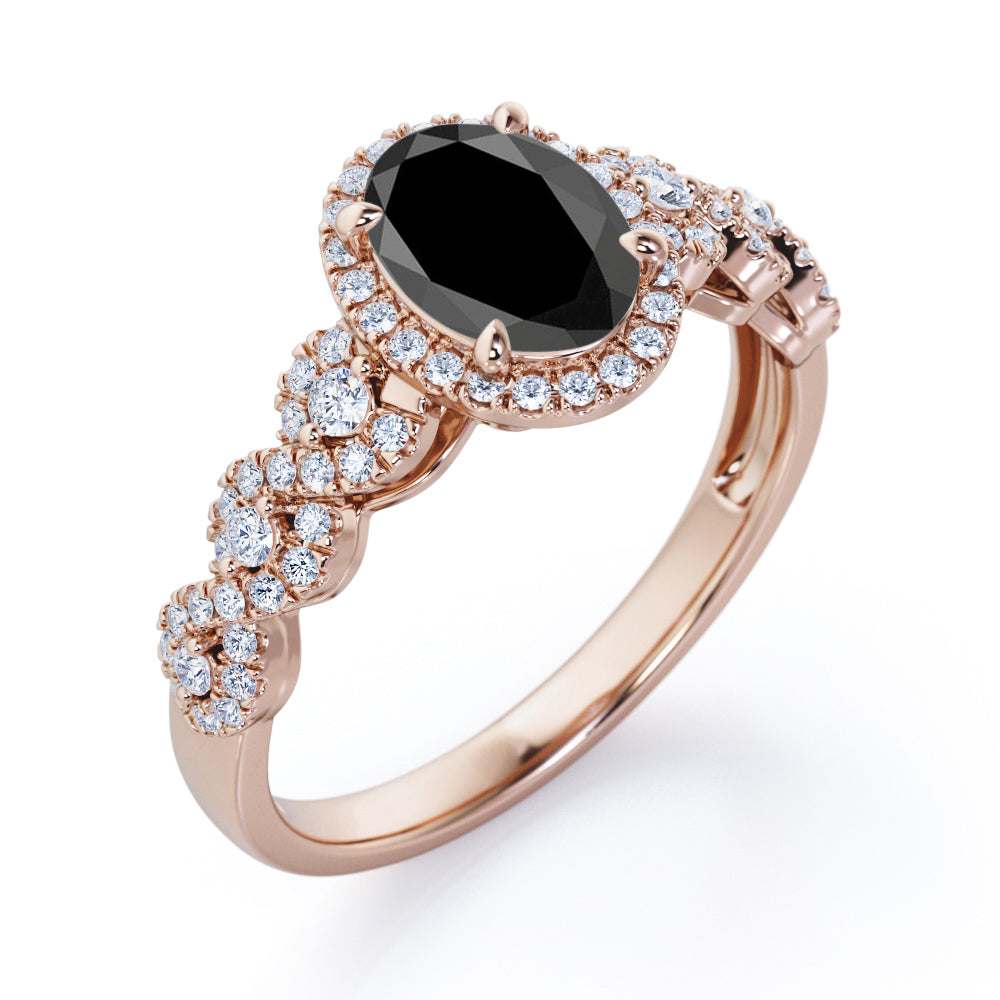 Twisted Pave Set 1.45 Carat Oval Cut Black Diamond Halo Infinity Engagement Ring In Rose Gold