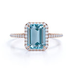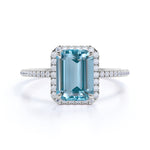 1.50 ct Emerald Cut Aquamarine Halo Wedding Ring