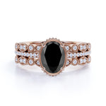 1.75 Carat Oval cut Lab Black Diamond Trio Wedding Ring Set for Women in Rose Gold
