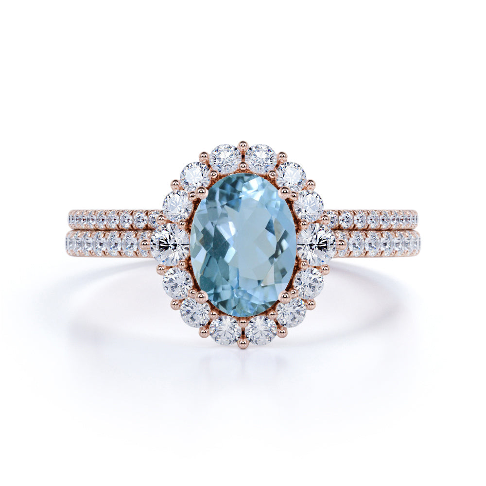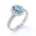 1.75 ct Oval Aquamarine Halo Wedding Ring Set