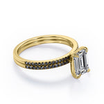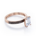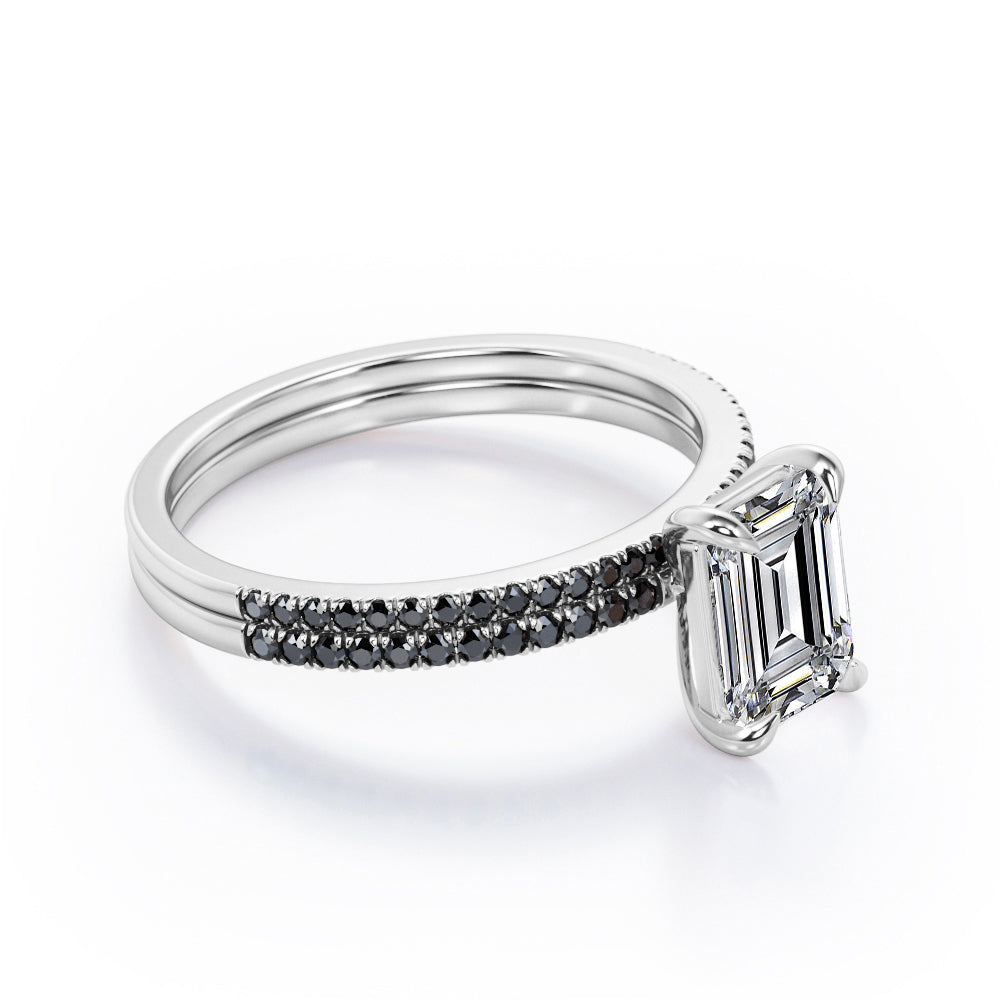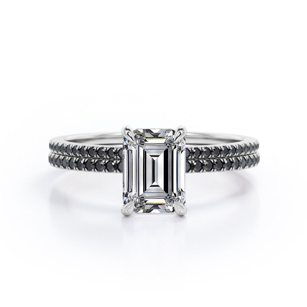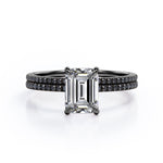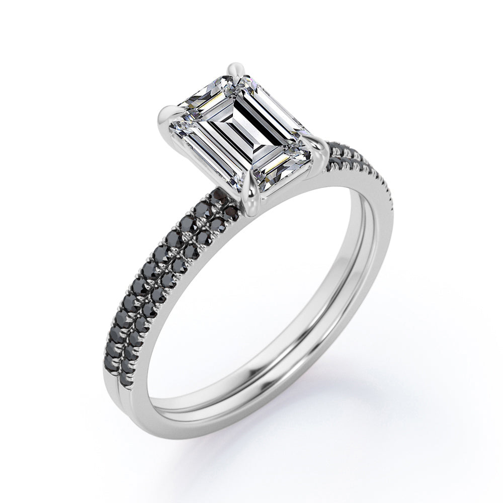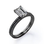 4-Prong Setting 1.65 TCW Emerald Cut Moissanite with Lab Created Black Diamond Wedding Set with Pave Accents in White Gold
