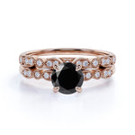 Affordable pair 1.50 Carat Black Diamond Antique Wedding Ring Set in White Gold. Affordable yet designer black Diamond affordable wedding ring set with engagement ring and wedding bands features 1 carat perfect lab created black diamond and 0.50 carat glittering diamonds and is made in solid 10k White Gold. This piece of jewelry is handmade, sporting quality craftsmanship that will last for years to come. And as always, the order comes with our 30 DAYS FULL REFUND policy, GUARANTEED DELIVERY within 5 Days, and in a BEAUTIFUL Jewelry Ring Box.