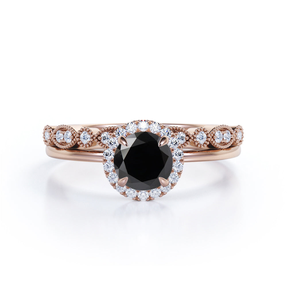 Antique Artdeco 1.50 Round cut Lab Black Diamond Wedding Bridal Set in Rose Gold