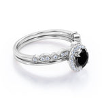 Antique Artdeco 1.50 Round cut Black Diamond Wedding Bridal Set in Rose Gold. This is a beautiful vintage design sparkling black Diamond bridal ring set, perfect for her, highlights total 1.50 carats perfect lab created black diamond and glittering diamonds and is made in solid 10k White Gold. The beautiful wedding ring band is handmade and personalized by me or one of my other skilled jewelry associates with over 15 years of experience. And as always, the order comes with our 30 DAYS FULL REFUND policy and in a BEAUTIFUL Jewelry Ring Box.