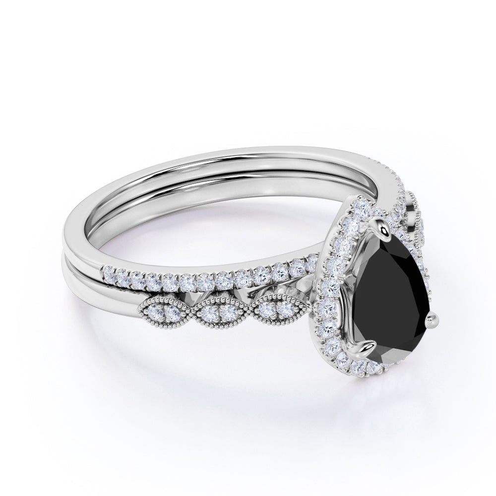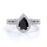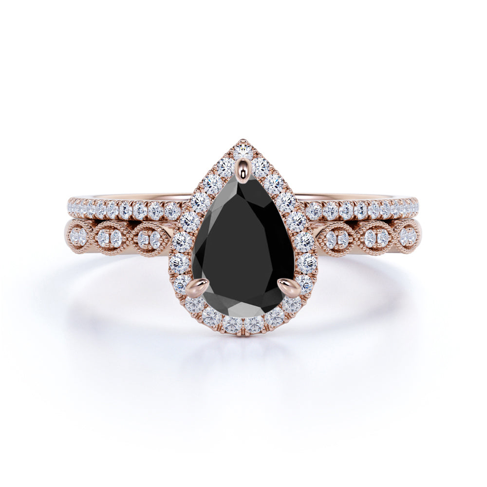 Bestselling 1.75 Carat Pear cut Wedding Ring Set with Lab Black Diamond for Women in Rose Gold