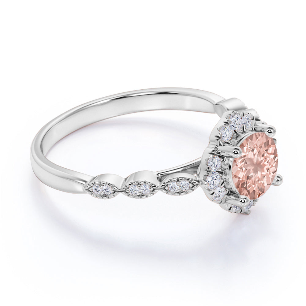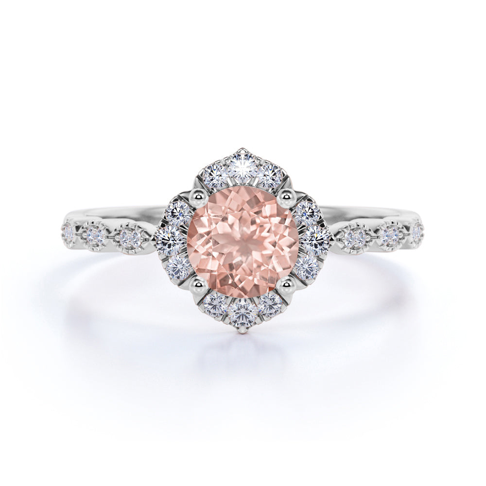 Bestselling 1.75 Carat Round Peach Pink Morganite and Diamond Antique Art Deco Engagement Ring in White Gold
