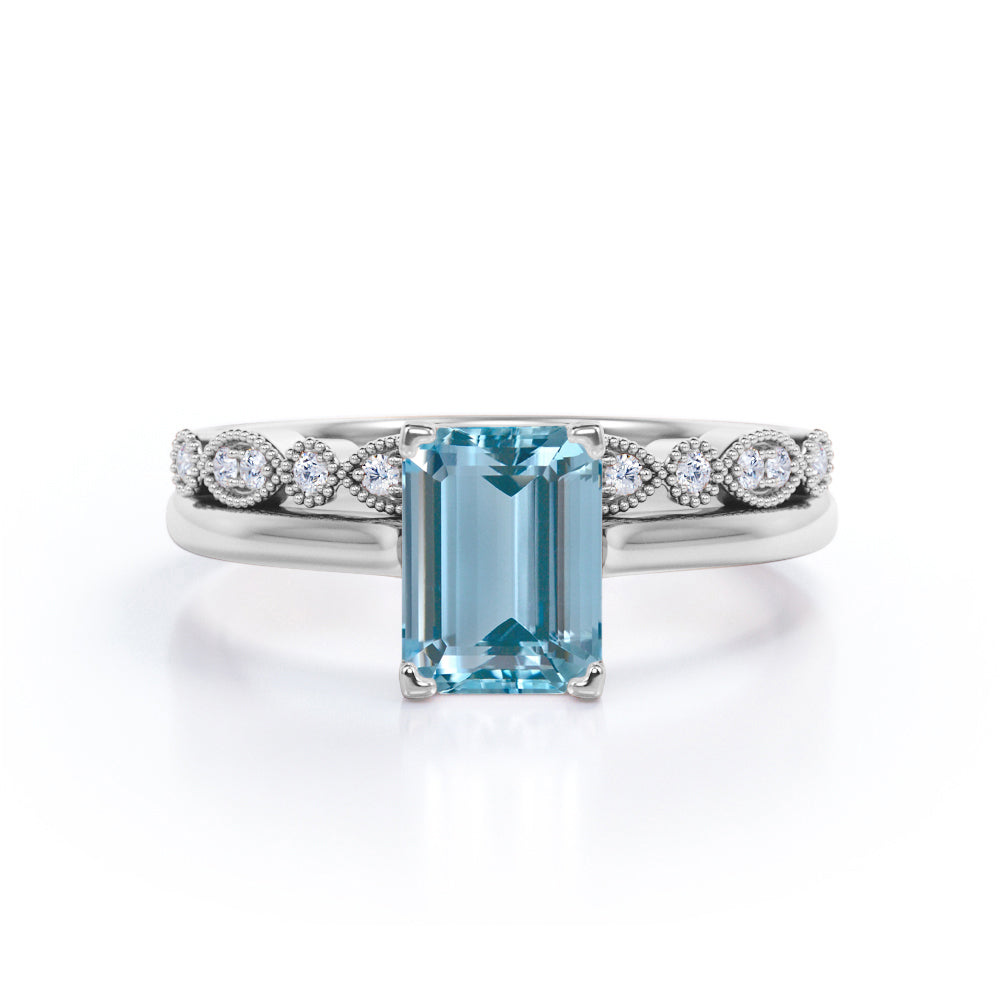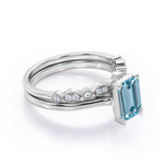 Bestselling 1.25 Carat emerald cut Aquamarine and Diamond Wedding Ring Set in White Gold