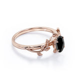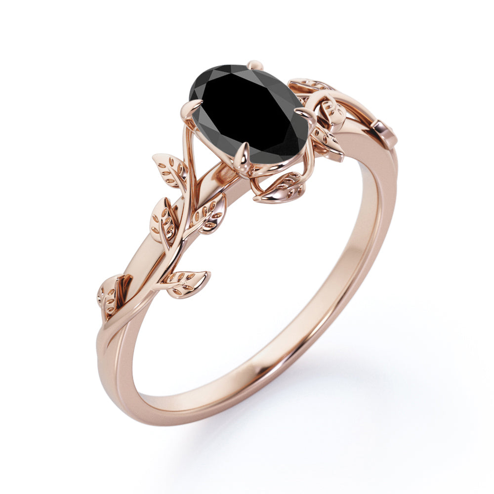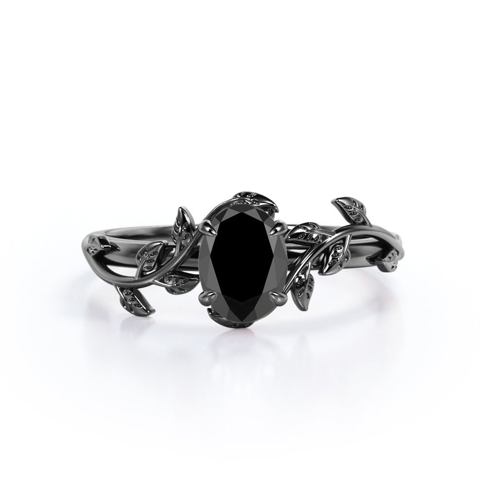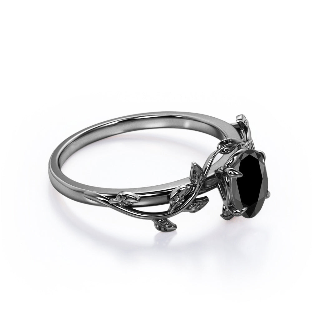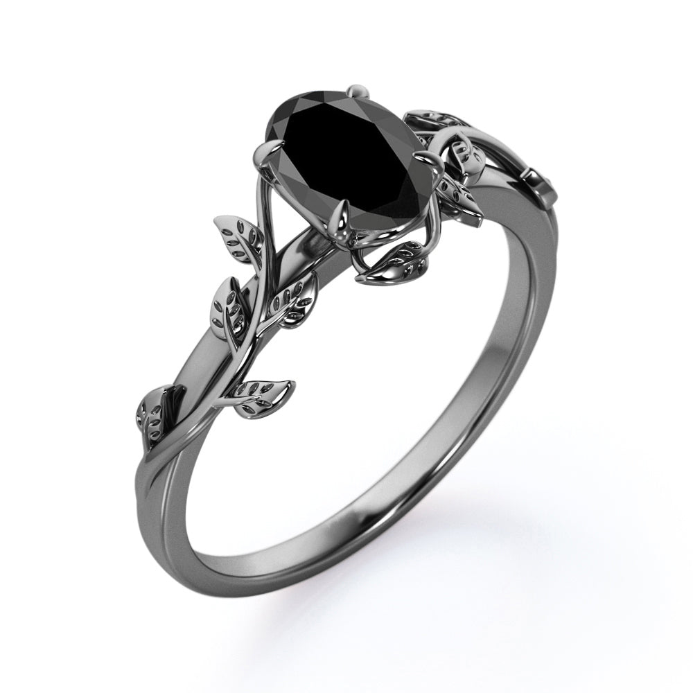 1 ct Oval Lab Black Diamond Leaf Style Engagement Ring